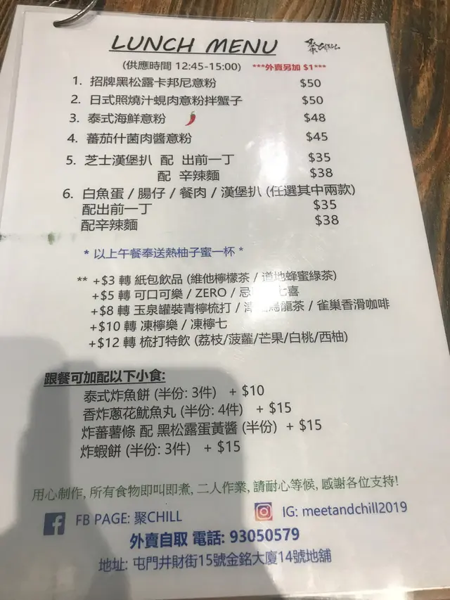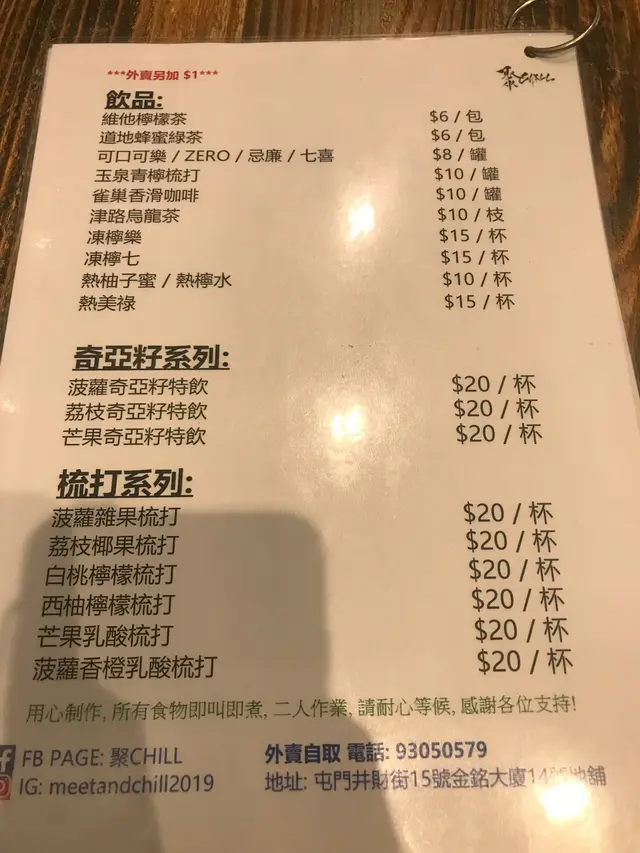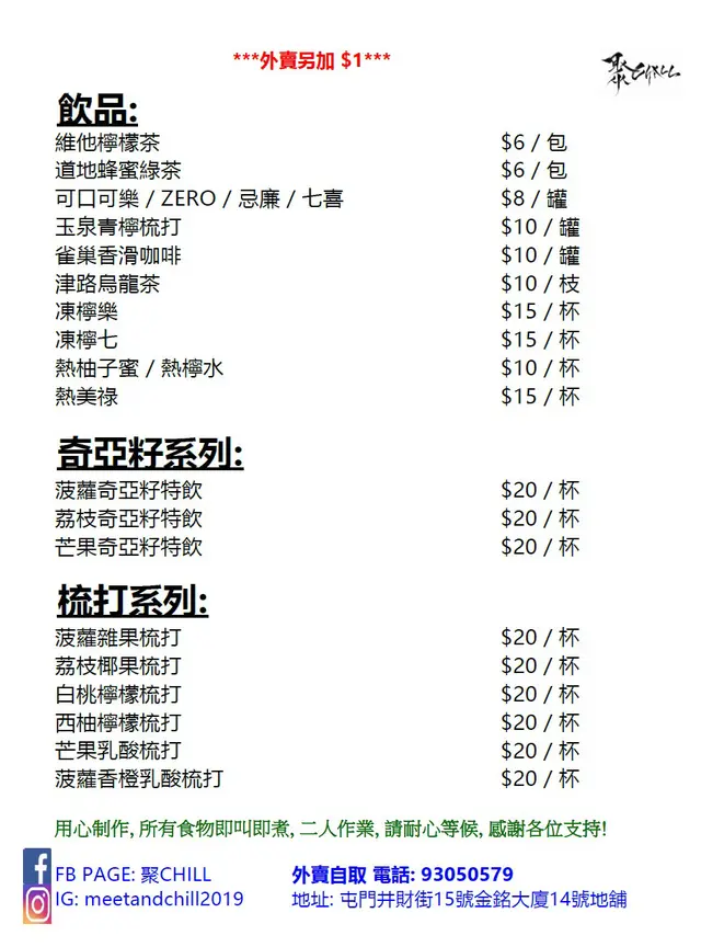 聚Chill (屯门) 网址: https://s.openrice.com/QrLS0C8O900 地址: 香港屯門井財街15號金銘大廈地下14號舖 电话: +852 96100560