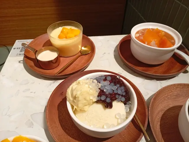 天氣咁熱,行街一定要食下消暑甜品🥵今次分別叫左龍眼椰果冰,凍椰皇榴槤燉雙皮奶同楊枝甘露。龍眼椰果冰好掂,佢唔同出邊其他鋪頭嘅刨冰,食完面頭有味道嘅,底下嗰層真係得冰,完全唔想繼續食,呢間佢係用30粒龍眼再加冰,變左沙冰,食到底都仲有味,同埋佢有椰果同埋爆珠,清新味道加豐富口感,好岩夏天食。凍椰皇榴槤燉雙皮奶呢個榴槤控真係必食!100分的推介,不誇張,榴槤果肉同雙皮奶入口即溶,非常嫩滑👍🏻最先食到重口味榴槤,然後到淡淡的奶香味,層次感豐富🔝係有驚喜。楊枝甘露呢款又係夏季受歡迎嘅消暑甜品。芒果香甜、柚子微苦、椰奶濃郁同西米露Q彈口感,帶黎豐富嘅味覺體驗。查看更多