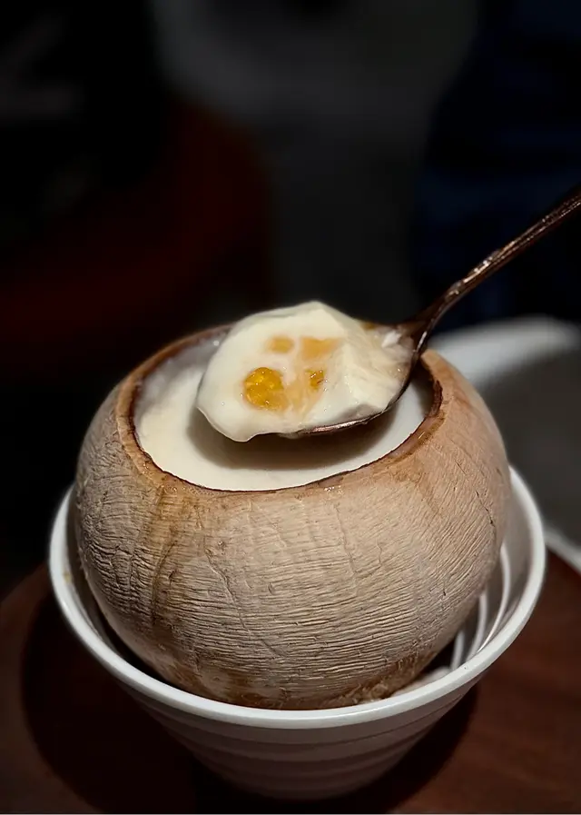 呢一系列甜品令人垂涎欲滴,無論係外觀定係口感都令人驚喜。首先,椰皇燉黑芝麻湯園雙皮奶,以濃郁嘅椰香同細膩嘅雙皮奶為基底,黑芝麻嘅香氣同口感令整體更加豐富。榴連黑糯米則係榴槤愛好者嘅夢想,香甜嘅榴槤融合黑糯米嘅 Q 彈,豐富咗味覺層次。椰汁芒果黑糯米清新可口,椰汁嘅清甜同芒果嘅酸甜相互交融,非常解膩。紅棗桂圓杞子燉桃膠(冷)則係養生嘅選擇,桃膠嘅滑潤搭配紅棗同桂圓嘅甜味,令人感到舒適。最後,芒果布甸嘅綿密同香甜令人一試成主顧。整體而言,呢啲甜品唔單止色香味俱全,更展現咗創意同傳統嘅完美結合,令人回味無窮。查看更多