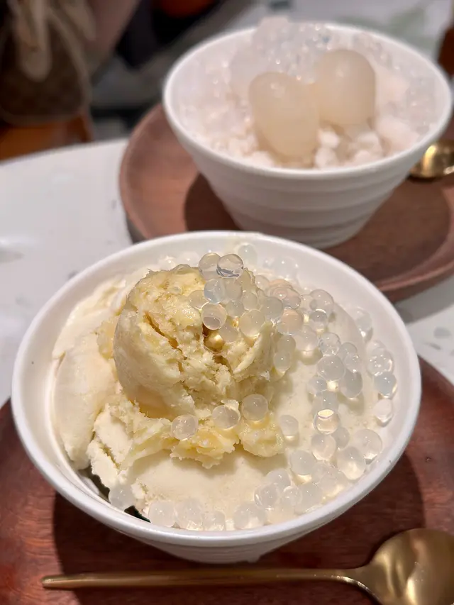 清新美味配搭特色甜品😋😋依間甜品舖,見佢比較出名係龍眼冰嘅甜品,咁當然要叫返一個試吓啦,試咗一啖之後,都覺得嚟到係值得叫嘅,口味好清新,係真嘅龍眼味,而且冰冰涼涼入口即溶,非常消暑解渴。佢冇款凍嘅甜品上面都擺咗啲脆脆珠,有多一重口感。但係識榴槤嘅朋友,我勁推薦要食佢榴槤冰嘅嘢食,我哋叫咗個榴槤黑糯米,呢個配搭好夾,除咗有味道非常濃郁嘅榴槤冰之外,仲有榴槤肉喺上面,加埋佢啲唔太甜嘅黑糯米口感豐富,榴槤愛好者必食。另外椰皇燉奶加湯圓都唔錯,但係會覺得冰嘅甜品更加係呢度嘅必食。查看更多