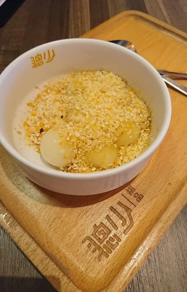 和閨蜜通完淋巴後,閨蜜想吃點東西,不過十時半大多食肆已關門,附近只有甜品店聰少甜品仍在營業,所以我們去吃甜品當晚餐,當然我們都吃熱的甜品,免得白白浪費通淋巴的效用。我原想吃椰皇燉桃膠,但店員說售罄,我唯有轉吃別的。閨蜜吃芝麻糊,那我就吃芝麻合桃露吧。另外我們點了糖不甩和榴槤班戟,因為我們忽然超想吃。芝麻合桃露色澤看似不錯,一點也不水汪汪,至於香味方面聞起來不算濃重,但能嚐到絲絲的芝麻,合桃的滋味,滑溜度一般,當然這裡不能跟中式糖水老店相比。榴槤班戟皮薄柔軟,榴槤肉跟忌廉一比一,若多些榴槤肉會更好,始終榴槤班戟精華在於榴槤肉嘛,榴槤肉非常甜香,綿密無比,入口即化,不錯的吃。迷你的糖不甩熱呼呼時吃最為美味,口感軟糯,沾上幼細的椰絲,花生,芝麻,由粉糰搖身一變成糖不甩,為我們帶來豐富的嚼感與甜美。查看更多