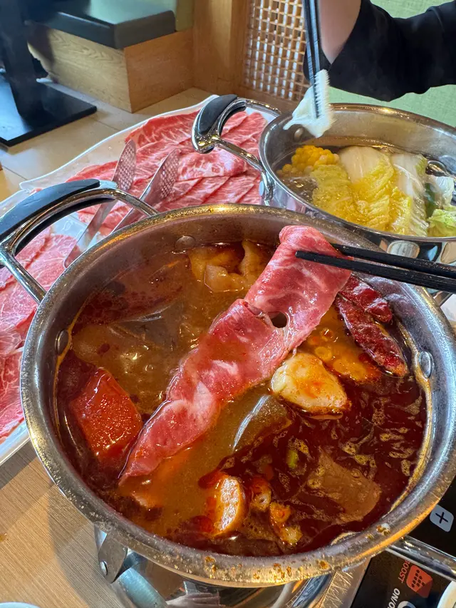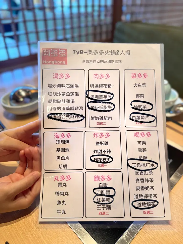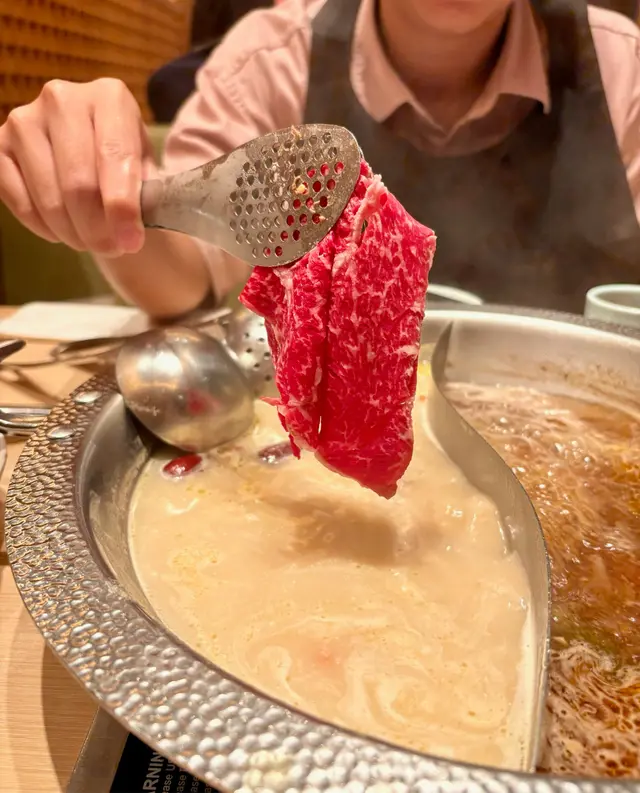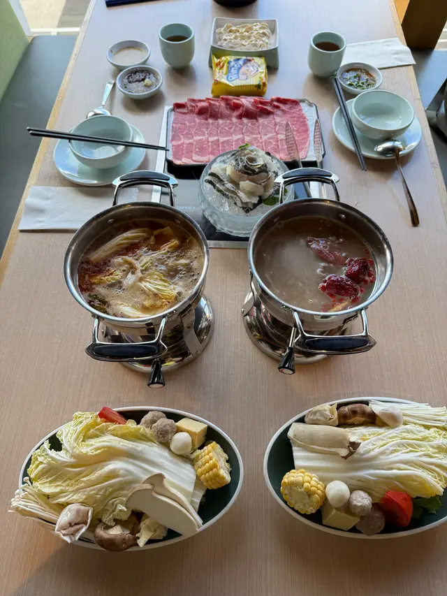 台灣過江龍之肉多多台式火鍋,原來已經開左黎銅鑼灣🤭台式火鍋我最愛就是它們的湯底,尤其是藥膳湯。真心好飲又養生。今日就黎試吓午餐既一人一火鍋先,份量足料,價錢又便宜👍🏻美食推介:💛頂級霜降牛一人鍋:霜降牛肉肉質非常嫩,入口即溶,片片油脂分布均衡,好食👍🏻💛嫩滑黑魚片一人鍋:一片片通透的黑魚片,裝飾為一朵玫瑰🌹只需在鍋內涮3-5分鐘便可以吃,鮮甜味道,沒有任何的腥味👍🏻💛火鍋材料丸及什菜:跟餐會有各一盤的鮮什菜、菇菌、餃子、什丸等,其中一顆丸是我最愛的包心芋頭丸,皮薄芋泥餡十足,好好味👍🏻💛王子麵及刀削麵:跟餐亦可選白飯、王子麵、刀削麵、紅薯粉等等,我選了王子麵及刀削麵,王子麵似我們以前的x字麵口感一樣,而刀削麵煙煙韌韌的口感。💛湯底:當然選了藥膳湯底,藥膳味道超濃超足料,湯底一上已經忍不住喝了半碗🤭。另外,選了沙茶醬湯底,濃濃的沙茶醬,配上牛肉或魚肉也相當出色👍🏻💛甜品:自助吧提供仙草、寒天、芋圓任吃,熱辣辣過後歎一碗超清爽。另外,跟餐還有雪糕一杯。超級滿足😌**侍應招呼相當親切👍🏻👍🏻👍🏻**台式火鍋價格便宜有質素👍🏻👍🏻👍🏻…查看更多