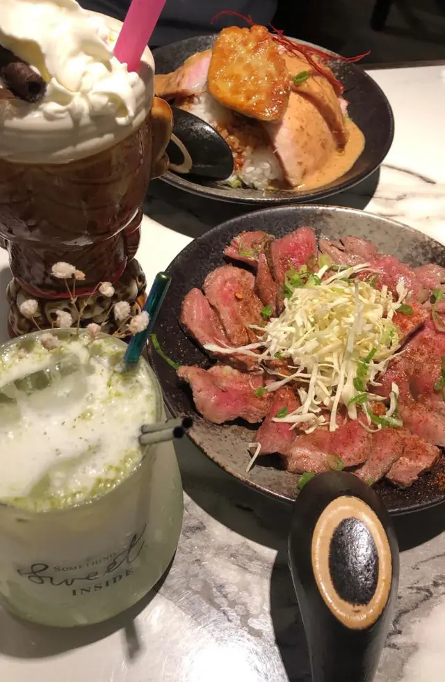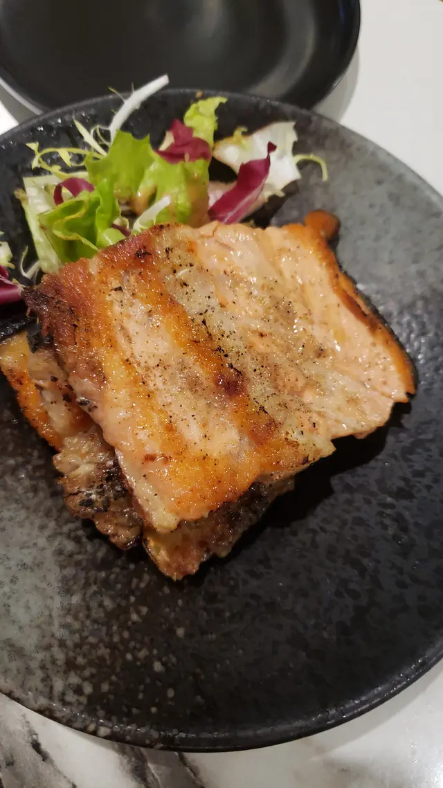 夜麻麻九点几去到尖沙咀,自己一个唔知食咩好,行到去厚福街谂住食过沾面就算数,经过呢间肉搏食堂见到好吸引嘅Menu停低咗嚟睇,门口个哥哥同我讲新开张有8折,谂咗2秒,就入咗去😆之前IG都有留意到呢个牛肉丼,卖相好似日本嘅Red Rock,当回味下都好⭐️慢煮顶级牛肉盛丼 150g $98本身都谂会唔会好细份,但系原来真系有好多牛肉,慢煮口感好好一啲都唔会靭,加埋个蛋黄同返食,真系好好味,女仔食嘅话150 g啱啱好见有折扣,顺便嗌多个小食试吓☺️⭐️盐烧三文鱼骨 $48送到黎热辣辣,即刻食好脆好香口,唔会好咸,味道啱啱好,三文鱼嘅油香好吸引,Lun出嚟嘅鱼肉好滑,鱼肉都啜到出嚟,$48呢个价钱绝对非常OK!(仲要有折😆)呢餐都食得好满足,服务态度好,员工都好似几靓仔😂食物一啲都唔求其,咁夜仲可以慢慢食唔催人走,可以好好享受食物😎…查看更多
