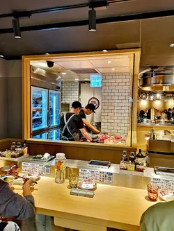 平时经过这家餐厅都看到很多人排队,这次和妈妈一同前来品尝。餐厅采用开放式厨房,坐在吧台上可以看到师傅现场煎制汉堡排,真是视觉和嗅觉的双重享受。而且,食物味道非常满意,性价比很高!3件和牛汉堡排套餐 (原味2件、芝士1件) $1253件和牛汉堡排套餐 (青咖喱、原味、芝士) $140套餐附送白饭、味噌汤和生鸡蛋。西兰花、饭和汤可以无限添,真的很慷慨!白饭使用日本虹煌米,米粒大颗,口感软糯,浓郁米香。味噌汤汤味入味,内含丰富配料,如菇菌和鱼蛋,热辣辣的汤非常暖胃,十分有诚意。汉堡排使用九州黑毛和牛与美国牛肉混合绞制,味道浓郁且多汁。店员会预先将汉堡排煎至七分熟,放在面前的铁板上,可以依照个人喜好再进一步煎熟,口味多样。原味:搭配蛋黄和寿喜烧汁,甜甜的味道已经很好味。再加烧肉酱和蒜香辣椒酱则多了一些酸辣感,颇具韩式风味。芝士口味:汉堡上盖上一块车打芝士,店员即场刨下芝士丝,让人感受到满满的仪式感。推荐的食法是加奥罗拉酱和黄芥末酱,还原出快餐汉堡的风味,咸香又邪恶。南洋青咖喱口味:期间限定的青咖喱口味,味道浓郁且有些微辣,散发著香草和奶香,配上香甜的菠萝,让这道汉堡排更具泰式风味。…查看更多
