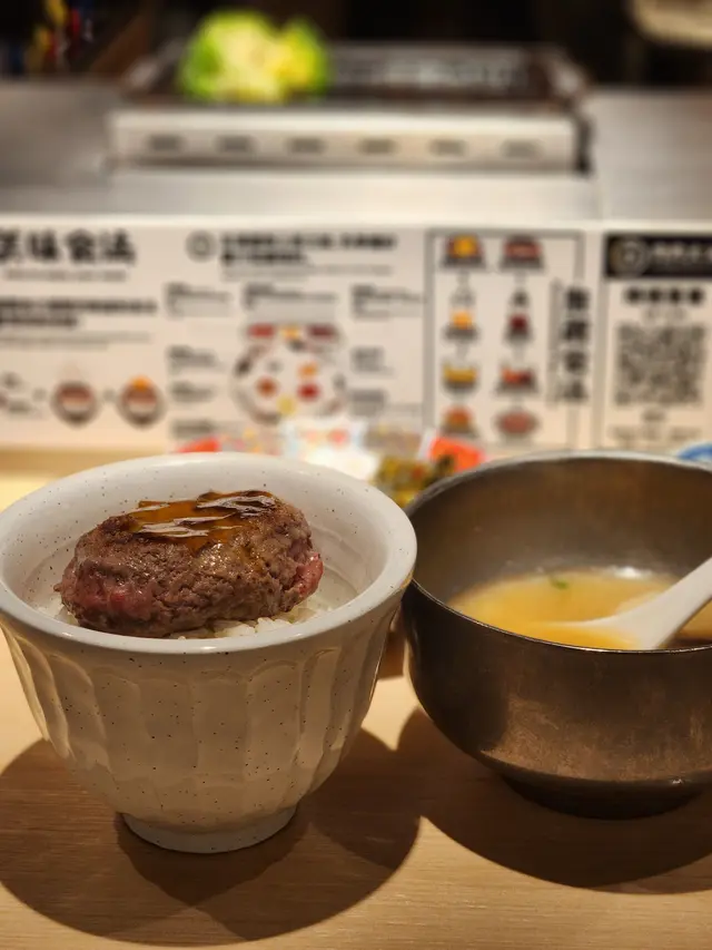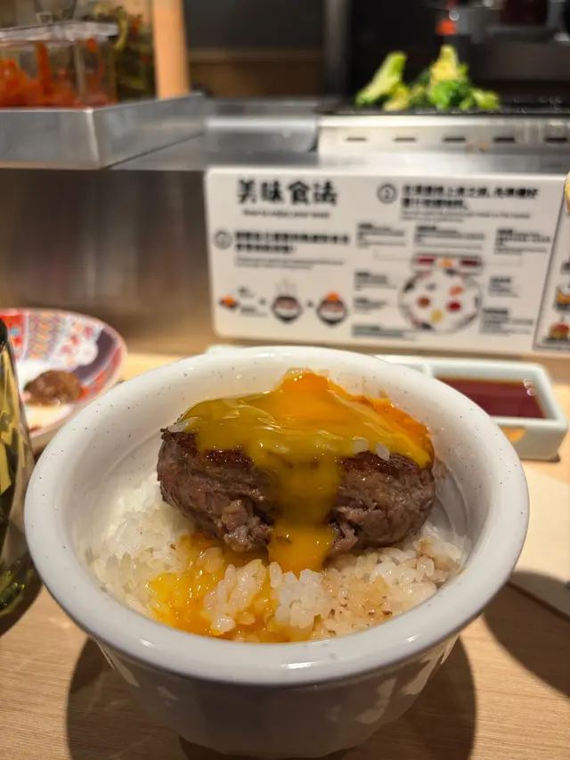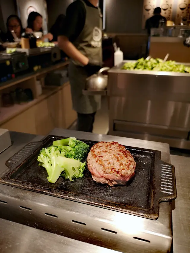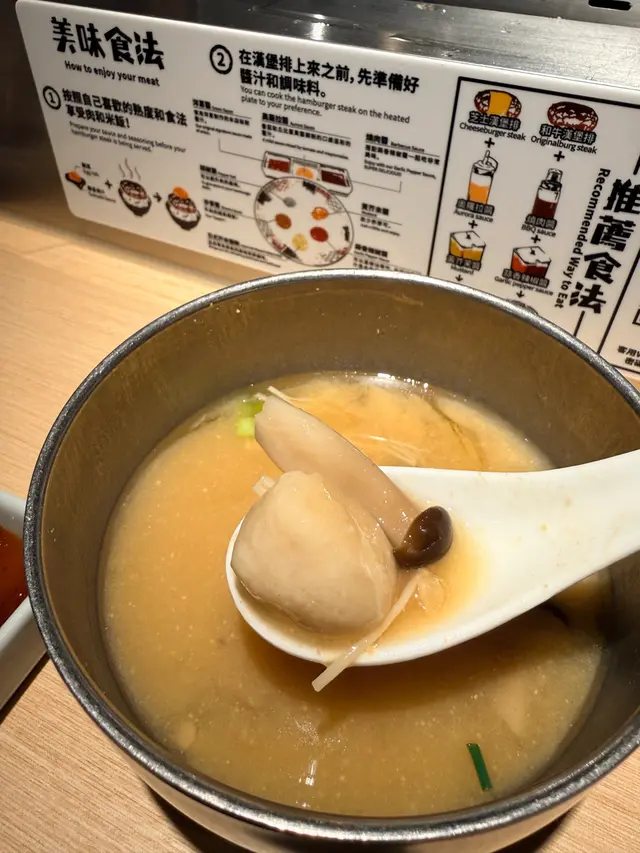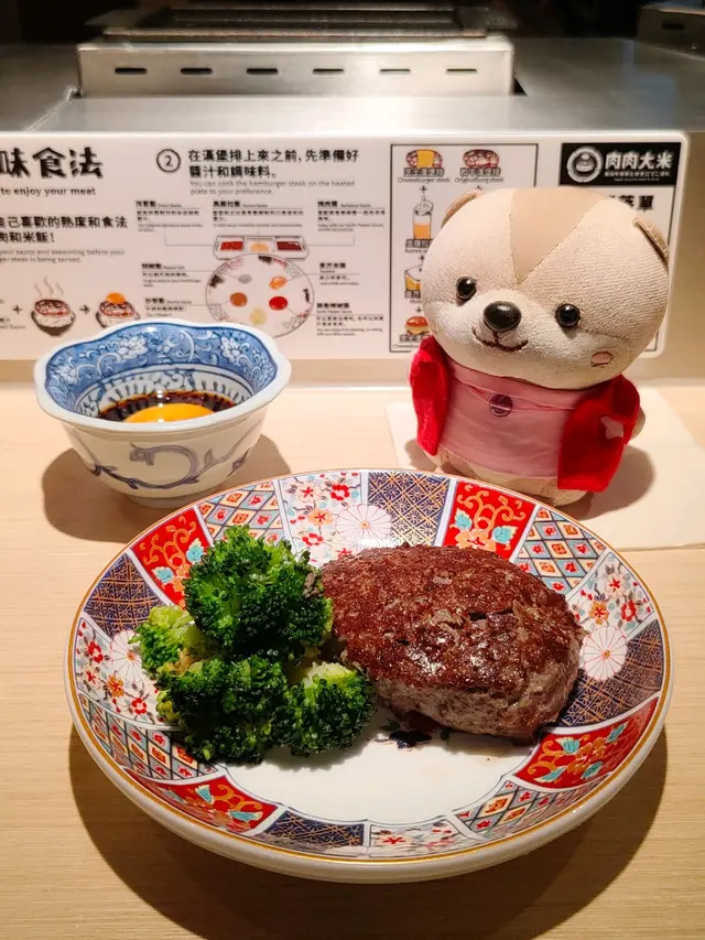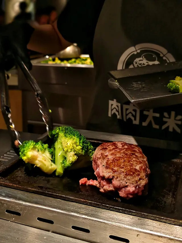 一經過九龍灣🚇德福廣場呢間肉肉大米嘅門口,就飄嚟陣陣香噴噴嘅🥩漢堡扒香味,難怪經常都大排長龍🤩。佢哋所有漢堡扒都係用🇺🇸美國牛加日本🇯🇵和牛混合製作而成,喺每間分店內切肉絞肉再💪人手做成,色澤好靚。入面採用開放式🔥廚房設計,全部吧台座位環繞廚房,😆可以近距離睇到師傅即叫即做即烤嘅過程👏,啲烤香味撲鼻而嚟,氛圍感爆表😋。我呢次品嚐嘅係🥢三件漢堡排套餐,包括其中一件係🗓️期間限定嘅南洋青咖喱漢堡排🌶️。首先上嘅係可以🤤無限添加嘅雜菇魚蛋味噌湯🥣,熱湯裏頭飄浮住入口鬆軟嘅魚蛋同埋雜菇🍄,湯底鮮香好正。米飯亦可以無限添加🍚,而呢度用嘅米飯更係特別講究嘅,選用日本東北紅蝗米🇯🇵,每日喺分店內用精米機新鮮磨成白米去煮,啖啖飯粒粒分明✨,香氣獨特,食起嚟帶有淡淡嘅甜味,同漢堡排🥩係絕配。原味和牛🐂漢堡排烤到6-8成熟先放上你面前個鐵板🔥,漢堡排呈粉紅色,中心軟嫩多汁😍,肉香濃郁得嚟唔會太膩。而配菜嘅西蘭花🥦亦都係可以無限添加嘅♾️。配上醬油生雞蛋🥚,漢堡肉嘅熱度同蛋液完美融合,即刻夾飯食🍚,超級美味!第二件係和牛芝士漢堡排🐮,賣點係頂部加入巨量即刨芝士🧀。師傅將一大片車打芝士放上漢堡排🥩上面,跟住即刨另一個款芝士絲淋喺漢堡排上🧀,啲芝士因為高溫即刻開始溶化🔥,牽起幼絲,好靚好appetizing。咬落去😋,雙重芝士嘅濃郁香氣同漢堡排肉嘅鮮嫩🥰互相交融,真係好芝味。最後上場嘅係南洋青咖喱漢堡排🌶️,呢個係期間限定新品,漢堡排淋上🍛青咖喱醬,加入咗菠蘿同埋香草醬🌿,青咖喱嘅鮮香同少少椰漿嘅奶香撲面而至,菠蘿🍍嘅酸酸甜甜平衡咗咖喱嘅濃郁,香草醬仲增添咗層次感,👍真係好特別!佢哋仲提供燒肉醬、🧅洋蔥醬、日式芥末鹽麴等共八款特選醬料🥄俾你自由配搭,可以自行創作出唔同風味😍。…查看更多