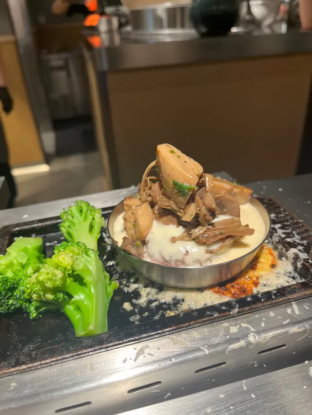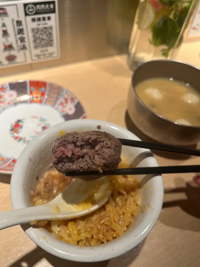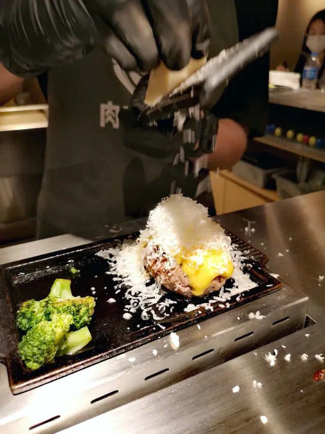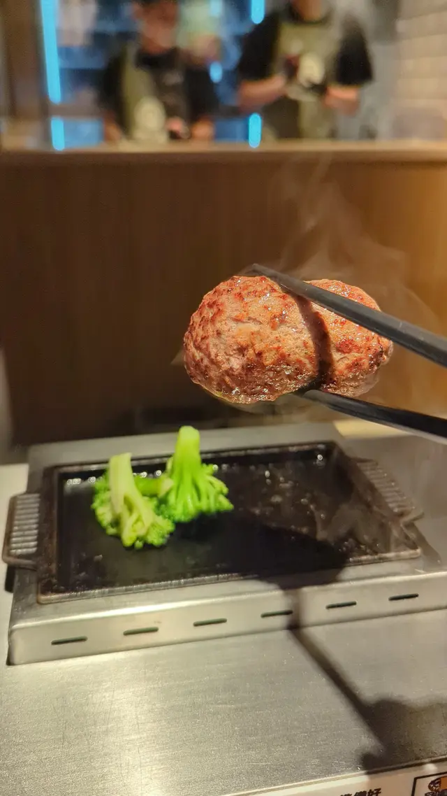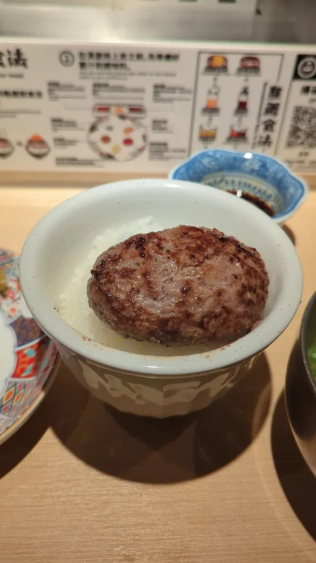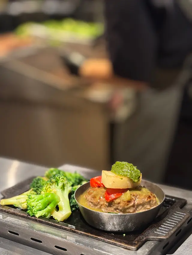 一經過九龍灣🚇德福廣場呢間肉肉大米嘅門口,就飄嚟陣陣香噴噴嘅🥩漢堡扒香味,難怪經常都大排長龍🤩。佢哋所有漢堡扒都係用🇺🇸美國牛加日本🇯🇵和牛混合製作而成,喺每間分店內切肉絞肉再💪人手做成,色澤好靚。入面採用開放式🔥廚房設計,全部吧台座位環繞廚房,😆可以近距離睇到師傅即叫即做即烤嘅過程👏,啲烤香味撲鼻而嚟,氛圍感爆表😋。我呢次品嚐嘅係🥢三件漢堡排套餐,包括其中一件係🗓️期間限定嘅南洋青咖喱漢堡排🌶️。首先上嘅係可以🤤無限添加嘅雜菇魚蛋味噌湯🥣,熱湯裏頭飄浮住入口鬆軟嘅魚蛋同埋雜菇🍄,湯底鮮香好正。米飯亦可以無限添加🍚,而呢度用嘅米飯更係特別講究嘅,選用日本東北紅蝗米🇯🇵,每日喺分店內用精米機新鮮磨成白米去煮,啖啖飯粒粒分明✨,香氣獨特,食起嚟帶有淡淡嘅甜味,同漢堡排🥩係絕配。原味和牛🐂漢堡排烤到6-8成熟先放上你面前個鐵板🔥,漢堡排呈粉紅色,中心軟嫩多汁😍,肉香濃郁得嚟唔會太膩。而配菜嘅西蘭花🥦亦都係可以無限添加嘅♾️。配上醬油生雞蛋🥚,漢堡肉嘅熱度同蛋液完美融合,即刻夾飯食🍚,超級美味!第二件係和牛芝士漢堡排🐮,賣點係頂部加入巨量即刨芝士🧀。師傅將一大片車打芝士放上漢堡排🥩上面,跟住即刨另一個款芝士絲淋喺漢堡排上🧀,啲芝士因為高溫即刻開始溶化🔥,牽起幼絲,好靚好appetizing。咬落去😋,雙重芝士嘅濃郁香氣同漢堡排肉嘅鮮嫩🥰互相交融,真係好芝味。最後上場嘅係南洋青咖喱漢堡排🌶️,呢個係期間限定新品,漢堡排淋上🍛青咖喱醬,加入咗菠蘿同埋香草醬🌿,青咖喱嘅鮮香同少少椰漿嘅奶香撲面而至,菠蘿🍍嘅酸酸甜甜平衡咗咖喱嘅濃郁,香草醬仲增添咗層次感,👍真係好特別!佢哋仲提供燒肉醬、🧅洋蔥醬、日式芥末鹽麴等共八款特選醬料🥄俾你自由配搭,可以自行創作出唔同風味😍。…查看更多