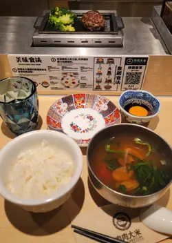 葵芳新都会广场最近开咗间日本过江龙汉堡排专门店「肉肉大米」,成日见到人排长龙,今次趁未到食饭时间唔使排队,去试佢个「三件汉堡排套餐」😎一次过试匀原味、芝士、同期间限定青咖喱,$140可以试齐三款口味,仲有白饭、西兰花、蕃茄面豉汤任饮任食👍🌟三件汉堡排(自选口味)$140🍚日本「虹煌米」白饭任装🥚日本生食鸡蛋一只🥦西兰花任添🍲番茄菜蚬肉面豉汤任饮🌟原味汉堡排一咬落去肉汁爆发出嚟😍 肉质好松化,唔会干争争👍 建议第一啖咩都唔点,就咁食,配埋日本米饭一齐食,超级满足🥰🧀芝士汉堡排店员会即场刨芝士,满满嘅芝士视觉效果满分💯芝士热溶后超级拉丝,芝士嘅咸香同汉堡扒都好夹,重口味之选🫶🏻🌟期间限定:南洋青咖喱(微辣)辣度比较温和,我谂小朋友都食到👍 除咗汉堡扒仲有菠萝同红椒配料,蘸上青咖喱汁味道好有层次,好开胃,真系几特别👍 🌟枱面有8款酱料,烧肉酱、蒜香辣椒酱、芥末盐曲等,啱晒咩都想试吓嘅我🤣呢度嘅服务好好,职员非常热情,时不时主动加西兰花,又会主动问需唔需要添饭添汤👍 餐厅不时会推出期间限定口味,今次青咖喱口味好有惊喜,唔知下次又有咩新口味呢?😬…查看更多