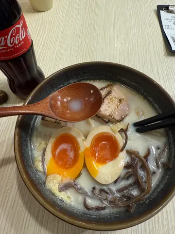 已经系第二次嚟,上次食咗咖喱忌廉乌冬,今次食慢煮豚肉汤乌冬 又系叫咗一set套餐,乌冬加小食加嘢饮,盛惠$118小食拣咗天妇罗,有两只虾南瓜茄子加甜薯。天妇罗皮薄而且热辣辣争啲辣亲。欣赏佢土地上菜好快乌冬个汤底系猪骨浓汤,而且真系浓汤𠮶种亦都唔会偏咸我觉得猪骨浓汤嚟讲会好过对面间熊拉面添🤣。乌冬啡啡地好似荞麦面咁,好chewy,几特别。啲豚肉份量亦都多,系厚切。店员服务态度好好呀,唔逼你搭枱,会过嚟帮你介绍嘢食,除咗用佢QR code佢仲肯帮你亲自落单。