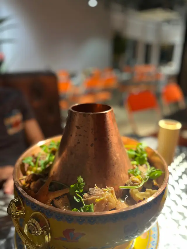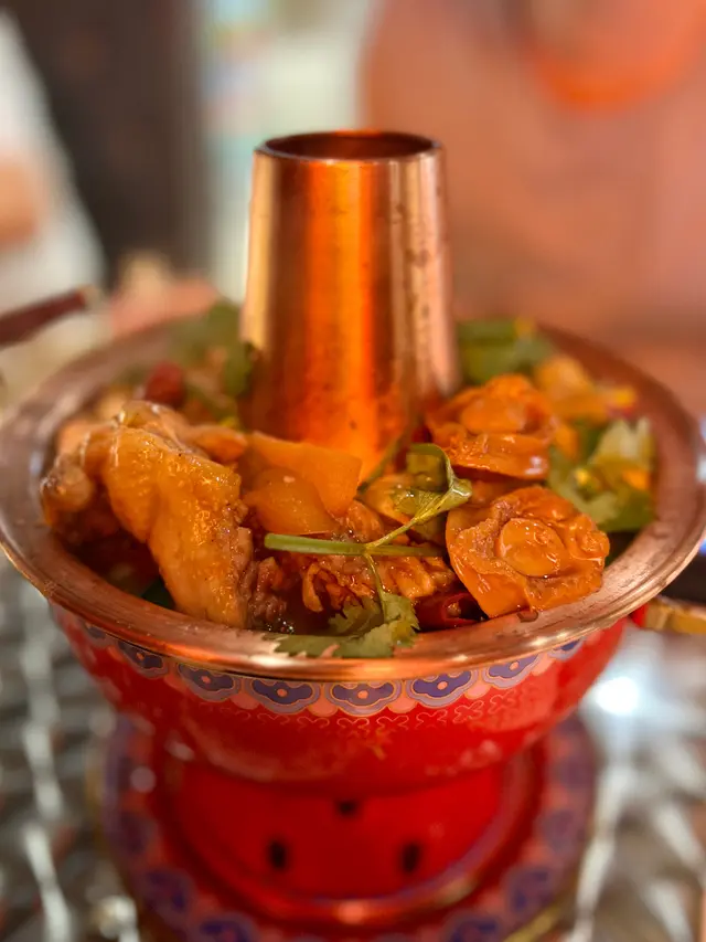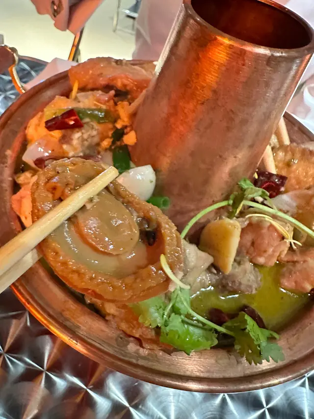 咁侍應姐姐都幾好人 介紹返個$168套餐比我地咁雞煲係有得選小辣 我唔太食得辣就選左小辛啦雞煲外觀好有古式官香感