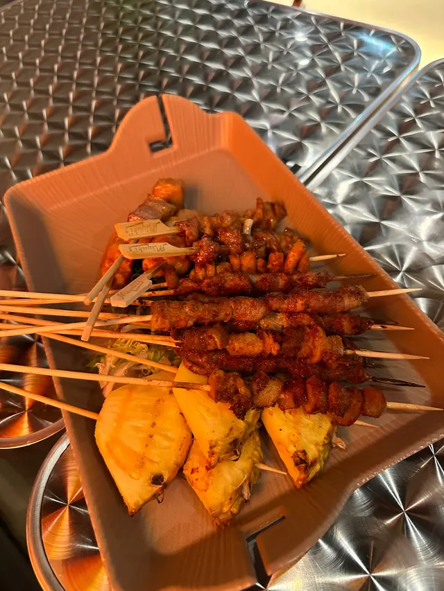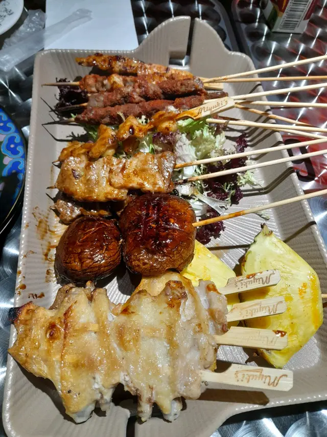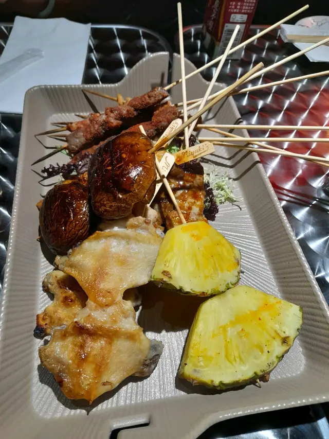 串燒方面 正路既豬肉 牛肉 雞肉 連羊肉都有咖啦我地2個人就每樣要d咁樣啦每人8串上台望落原來都唔少食落質素正正常常 無特別大問題