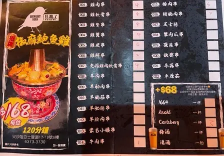 係上星期尖沙咀行完街 要搵晚餐食 係街見到廣告牌寫住雞煲$168送8個串燒同埋有無酒精飲品任飲於是就上去試下啦