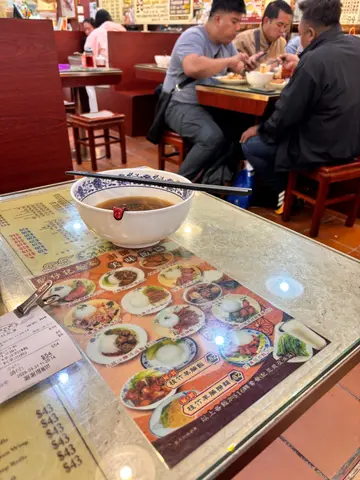 因赶时间,中午到附近呢间面店解决。店舖尚算干净企理,点了一碗牛筋河,等了大概5分钟就有得食。碗面上枱既时候睇落卖相正常,牛筋份量ok,色水正常,心谂味道应该不会出事挂...用筷子夹起一旧牛筋,就知道唔多对路,隔住筷子都feel到佢好硬,咬落去类似食紧鸡软骨既口感,每一旧都系咁😅,可能牛筋太好卖,炆唔切?至于面同汤就不过不失。埋单$38。总结:餐厅适合要方便、求其揾嘢食医肚既人,地理位置近地铁出口,处于尖沙咀闹区。