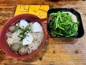 原本谂住同 BB 去中山纪念公园玩,但时间就得唔好,啱啱中午,个太阳太晒,就不如去食个午饭先,中山公园泊好车,行到去德辅道西,东边街交界,唔知食乜问 BB,BB 就指我哋入去皇后大道,行入去见到条街都几多嘢食,卤水店好多,又有烧味,又有日式料理拉面咁,兜咗个圈,发现呢间肥仔记个门口飘咗一阵虾子味,好香,同埋佢有一种我以前喺澳门珠记水饺嘅回忆,所以就入咗去啦。唔知间舖本身系唔系食肥牛嘅呢?佢好似有好多牛嘅菜单,但入咗去就唔谂,叫咗个水饺云吞面,我老婆见到有鱼肉春卷就嗌咗个春卷墨丸米,茶水唔讲啦,其实呢啲舖头都冇乜特别㗎喇,街坊生意舖头仔你想佢镶金咩?咁就讲吓啲水饺云吞,水饺嘅大小唔错,都够大只嘅,每粒都包住差唔多要爆出嚟嘅馅,入边有木耳、虾同猪肉,猪肉好味,虾新鲜,木耳爽口,个面系碱水面,不过就冇乜碱水味啦,碱水味我麻麻,反而觉得几好,个汤好香有好浓郁虾子味,但冇虾子㖞,真系唔知佢点整,饮咗两三啖都唔觉口干应该冇味精。而佢啲云吞都好大粒嘅,不过水饺同云吞除咗个皮有分别同埋冇咗木耳之外,就真系唔知有咩分别。我嗌双拼嘅,有两粒水饺三粒云吞,份量都几好又啱价。而我老婆𠮶碗春卷墨丸米,系鲮鱼春卷,块皮好味,包住嘅鲮鱼完全冇草腥味,又冇碎骨,好味,墨丸好弹牙,咬落口就知唔多粉,又有粒粒墨鱼肉,足料。腐乳通菜就真系好一般,系可惜在腐乳应该系来货唔系自己沟,通菜都系就咁渌一渌,但,菜,清清地已经好食。唔知呢间系咪连锁嘅呢?好似都有好多分店,不过呢啲舖头我都几钟意去嘅,装修唔系话好旧式,坐落又几舒服,啲木枱又几靓,两个双拼面,加个通菜再加两杯冻饮,一旧水都唔使,又食得饱,质素又唔差,够啦!…Read More