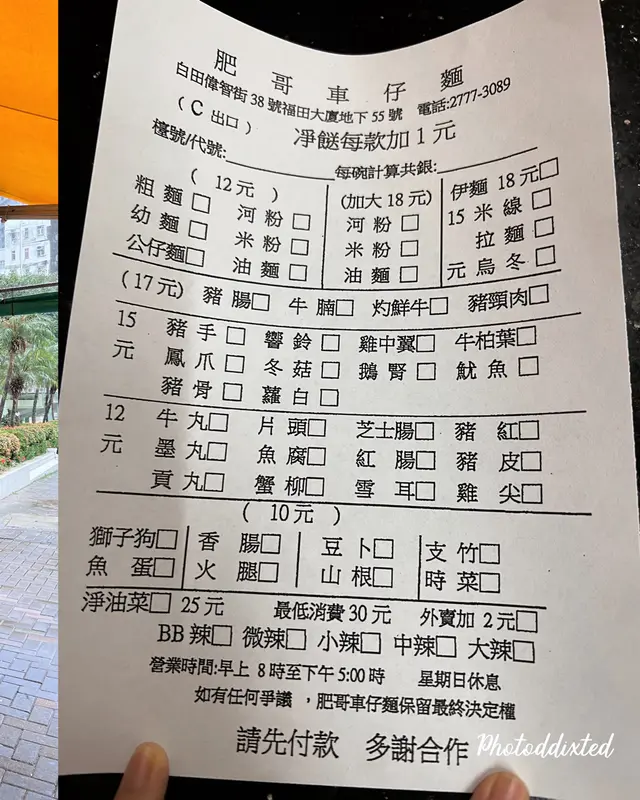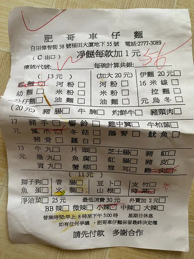 肥哥車仔麵 (石硖尾) 网址: https://s.openrice.com/QrLS0q5G000 地址: 香港石硤尾偉智街38號福田大廈地下55號舖 电话: +852 27773089