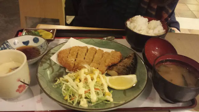 有日去左北角個間肥魚日本料理食lunch, 以價錢黎講, lunch其實唔算平, 一入到去見到佢有幾間日本和室, 但地方比較舊, 如果唔係因為去搵朋友, 我都未必會入去!我叫左個日式滑蛋豬排飯定食, 味道唔錯, 豬排肉汁同醬汁都幾甜, 幾好味,碗飯都ok大, 係正正常常既一個滑蛋豬排飯, 至於佢個配菜仲有個蒸蛋同麵鼓湯的, 蒸蛋要熱食先好味,但個湯我飲左兩啖就放低左, 味道好淡, 好似溝左好多水咁!!另外,我個fd叫左個靖魚配炸豬排飯定食, 樣子都幾好,但因為冇汁既關係, 配白飯食好乾, 而其他配菜同我個定食都係一樣, 冇咩特別,不過呢個set冇野飲, 得杯茶!基本上呢間野好舊, lunch時間去都唔多人,一入去就有得坐, 野食尚算OK, 但去一兩次都可以唔再去~…查看更多