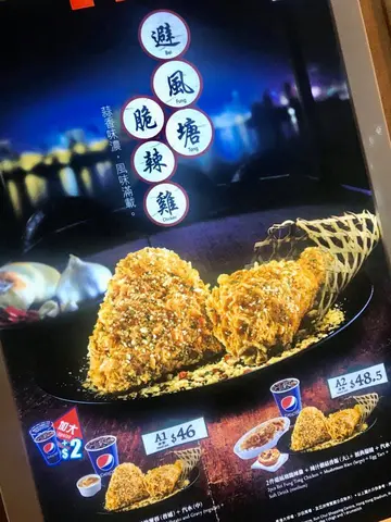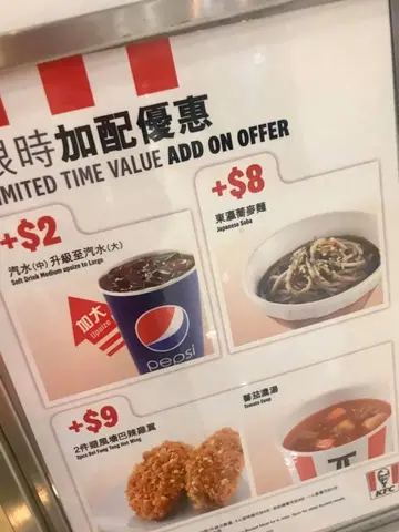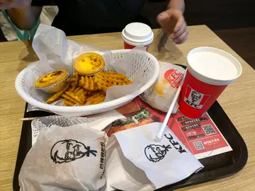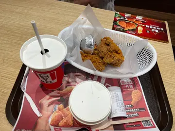 一路行一路谂食鸡有咩咁好食?突然之间肯德基就出现系眼前,摘日不如撞日就即时进入店铺解开头先既疑惑啦!见到有份餐叫做双层鸡扒军舰几特别,讲明系创新无包鸡堡,好似汉堡包又无面包个样好好食窝,其实有时食野就需要冲动,无咩考虑就决定试下,个无包鸡堡一啖咬落去好食到真系难以形容,个两层鸡扒好食到无尽爆晒灯,可能系肯德基有史以来最经典既作品,里面个层芝士融入左落去烟肉同鸡度真系无谂过食鸡肉可以咁好味!跟住执边又有份薯格陪住食, 每口都系享尽人间既口福!