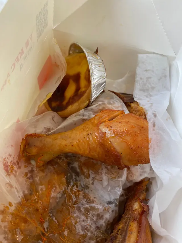 10 pieces kfc fried chicken ,can order aichuan (new favour) ,original and baked chicken sichuan favour is very spicy ,and oily .....the sauce and favouring is sichuan oil too hot and spicy for meordered 2 egg tart too taste really good after eating spicy chicken 查看更多