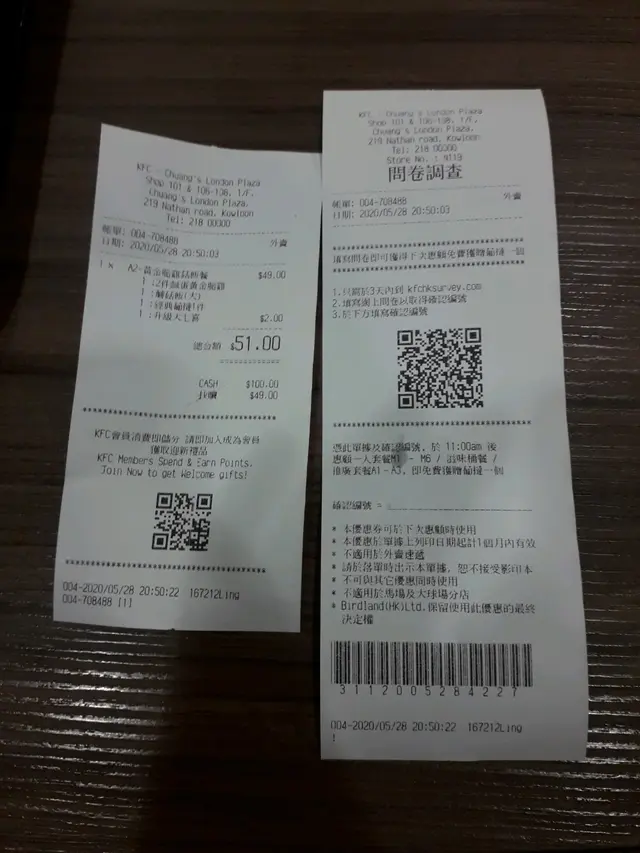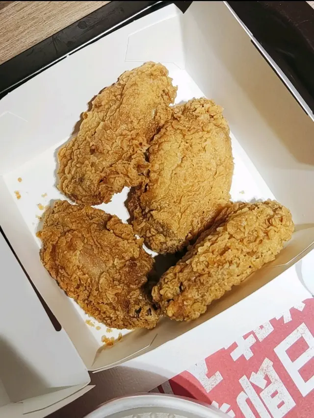 好耐冇食KFC啦,原來而家用電話app就有優惠券,$72有咁多嘢食呀!哇,有4件雞,2個飯,兩個葡撻,兩杯汽水加上而家疫情梗係最好外賣返屋企食啦,全部嘢食都標準中規中矩。葡撻無敵唔使講啦,我買嘢食嗰陣大排長龍勁多人,但係都維持到正常水準。出餐又快,由KFC行返去屋企要15分鐘,返到屋企都仲係熱辣辣,啲雞仲係脆卜卜,好正!最後我連嗰啲炸雞碎外層都食埋😋😋😋查看更多
