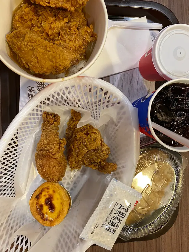平時成日都食kfc,今次黎到尖沙咀食,個人覺得呢間裝修間隔麻麻地,櫃台同用餐嘅地方分開,好似唔係係餐廳食野,而係food court食野咁,體驗就係無咁好啦。至於今日我地食左二人餐,有4舊雞,兩個飯,兩個葡撻,兩杯野飲,都ok嘅,夠飽。我地叫左兩件家鄉雞,兩件辣雞,都幾熱幾脆,唔會好似有d分店,可能放得耐,有d位會淋身左。我自己幾想試下佢新岀嘅燒雞,不過可惜今日賣曬,無機會食到,下次有機會再食,一定會試下!查看更多