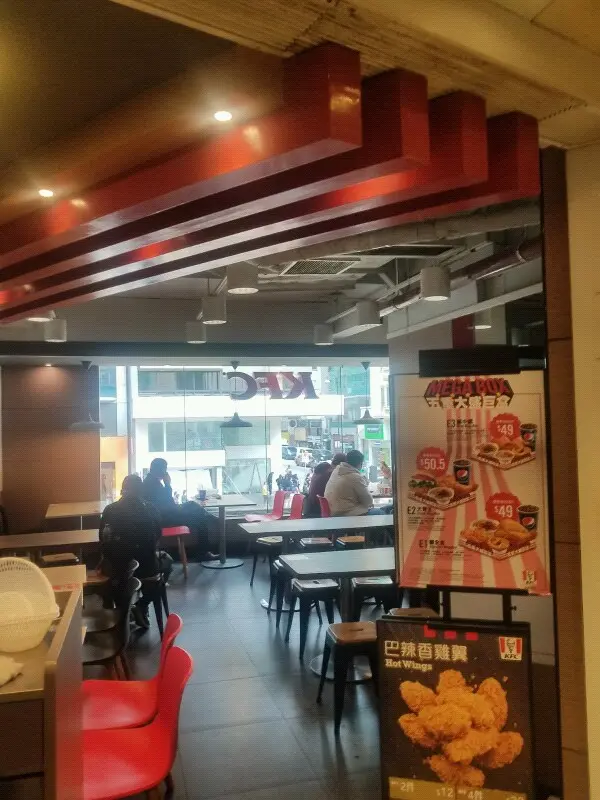 出餐非常慢。叫咗幾隻雞翼,足足等咗半個鐘。但係佢哋唔覺得有問題。雖然落單是有講過要等。但係半個鐘頭真係不可以接受。呢個係快餐如果5分鐘內出唔到餐就唔應該賣。向職員投訴結果俾佢鬧返轉頭。要求邊主管又遲遲都唔出嚟。如果要請咗好耐先肯出嚟同我傾。另外嗰層有男女廁所。但係佢哋唔俾鎖匙。所以用唔到。只有一格殘廁可以用。想洗個手都幾耐。唔想有惡劣服務,請移玉步。附近有咁多嘢食點解要幫襯。咁嘅服務態度肯定已經過時。Food is ok. We order the spicy fried chicken, chicken wing, corn and mushroom rice.. They are all standard KFC food and taste just like any other KFC. Spicy friend chicken is very well cooked and it is too spicy for younger kids.chick wing was decent. but nothing spectacularmushroom rich is a little blend. nothing special and quite forgettable.corn is a bit wet and expensive. for such a small piece of corn charges 7 dollars (even with meal) is pricy.查看更多
