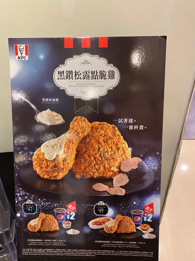 行過佐敦彌敦道,見到地面有大大張poster,又黑松露點脆雞就知又出左新野,熱愛香口東西嘅我當然唔會放過啦🕞輪後時間🕤餐廳晚飯人都比較少所以唔使點等🧑🏻‍🍳侍應服務🧑🏻‍🍳:服務員本身應該係學生新返工,咁我叫咗兩個餐一個跟低糖綠茶另外一個跟可樂,後面個經理認真抵讚,佢即刻提議服務員將低糖綠茶打去另一個餐成功成個餐慳咗$3唔單單系細心,重好有耐性解釋比個新人聽,咁好嘅經理真係買少見少🥢推介食品🥢1️⃣ 黑松露點脆雞餐 $49即刻來時返個重點推介先,本身個雞皮已經有少少香草粉,不過用緊唔辣嘅雞做底,唔太新鮮,個黑松露醬係酸酸甜甜,不過太似沙律醬,好固體,點極都唔會均勻,另外佢個蘑菇飯都一如以往地出色味道 😋😋😋賣相 👱🏻‍♀️👱🏻‍♀️👱🏻‍♀️價錢 🏦🏦🏦(5分最高)🔆總結一下🔆:上次推出嘅粟米黃金炸雞更加好味,期待再出查看更多