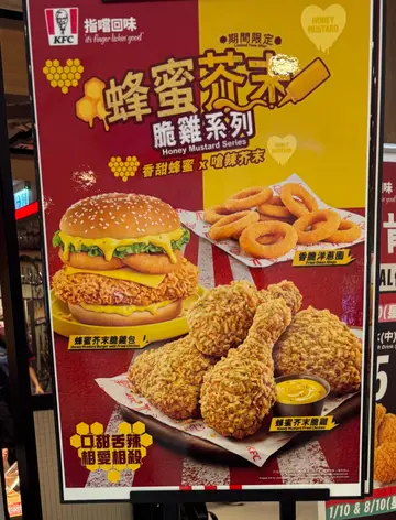 每次去KFC都要食返件原味鸡,香脆外皮加上嫩滑鸡肉,真系百食不厌。香港KFC的炸鸡炸得不会太油腻,咬开仲有肉汁,非常满足。配埋薯条或者忌廉汁薯蓉,一餐就够晒饱。钟意辣既朋友可以试下辣味炸鸡,香辣够劲但唔会辣到抢味。今次系铜锣湾分店用餐,环境干净,职员服务都几有礼貌。唯一美中不足系人太多,要等位。不过食物质素冇失望,KFC炸鸡果然系经典之选。…查看更多