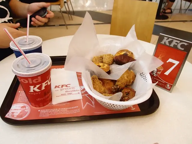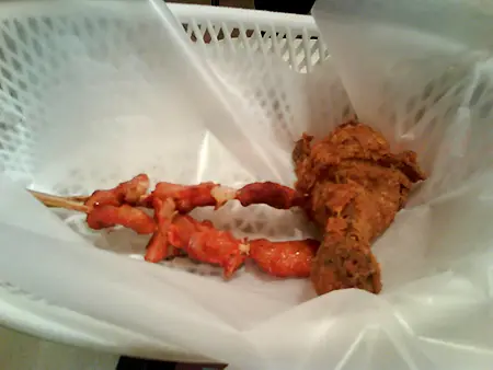 到搵到喇, 搵位又係一大難題, 到搵左位喇, 先發覺買餐已屯積左三十幾人係度等埋野食....可見職員既效率。。。買左兩個北京雞卷餐, 包括一個雞卷, 兩件雞, 一個葡撻, 一杯野飲. 另外再買多四隻巴辣香雞翼今次既雞, 不論係原味, 燒雞, 雞翼都係比較乾