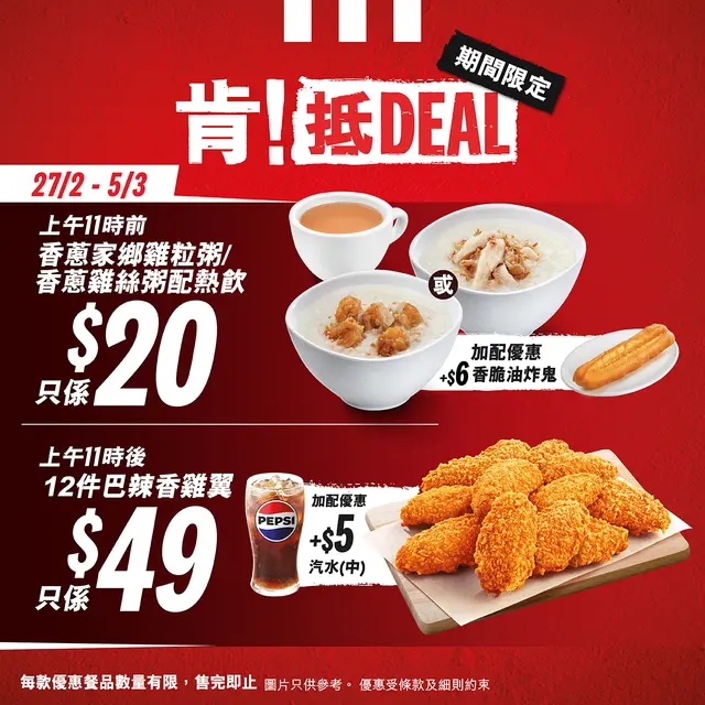 肯德基家鄉雞 (KFC) (红磡) 网址: https://s.openrice.com/QrLS02BO800 地址: 香港紅磡馬頭圍道44-46號家維購物中心低層4-5號舖 电话: +852 27961211