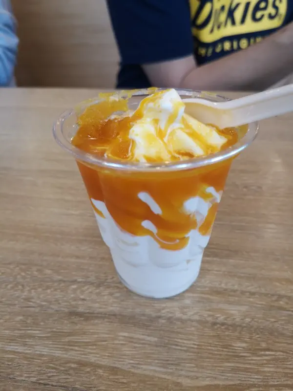 由於非常喜歡食鹹蛋黃, 所以KFC 一推出鹹蛋黃金系列, 鹹蛋黃金雪糕便成了我的必試名單。牛乳雪糕淋上鹹蛋黃金沙, 鹹蛋黃金沙的確有起沙口感, 鍾意食鹹蛋黃人士都會喜愛這口慼。鹹蛋黃金沙味道有點兒偏鹹, 未有鹹蛋黃香。配上牛乳雪糕, 牛乳雪糕的甜未能帶出鹹蛋黃香, 而鹹蛋黃金沙鹹味亦蓋了雪糕的奶味, 令到人不覺得正在食雪糕。相信鹹蛋黃金沙需要加以調較, 新品才令人滿意~查看更多