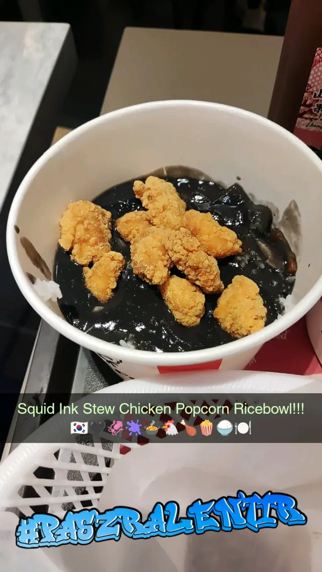 Squid Ink Stew Popcorn Chicken Ricebowl!!! 🇰🇷🖤🦑🐔🍗🍿🍚🍽️