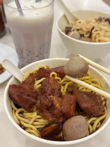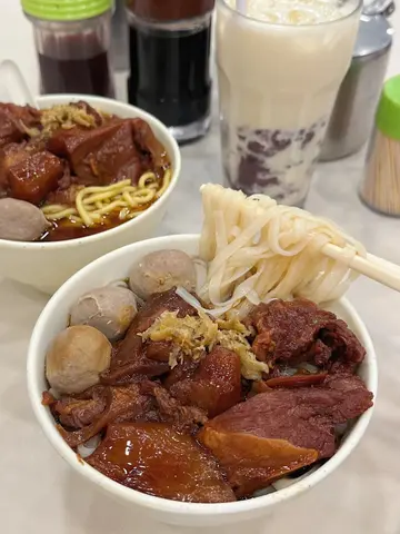 穿过元朗裕景坊嘅旧街市 呢间「📍胜利牛丸」阿公阿嬷嘅聚脚点1982年开到而家 装修仲系旧式圆櫈铁台 午市依然坐满白发熟客👵今次就同大家拆解 呢碗承载住元朗人集体回忆嘅「🐮牛三宝」系宝定系草?【牛筋牛腩牛丸三拼🍜】牛筋×牛腩×牛丸 堆到泻晒嘅肉量 打工仔睇见即刻眼湿湿✨ ▪ 牛筋 炆到似啫喱咁duang duang声!胶质黏唇得嚟唔黐牙▪ 牛腩坑腩部位算靓 筋膜分明🐄 可惜炆嘅火候唔够稳定 走水未够彻底 有轻微嘅膻味 建议淋一匙秘制辣椒油🌶▪ 牛丸口感的确系爽弹过乒乓波🏓咬落仲喷肉汁但同潮汕牛丸比就输蚀 牛味偏淡 似纯肉筋感欠香浓油脂感▪ 汤底牛骨熬足钟数嘅汤底 偏咸 淡口人士建议叫「少汤走冬菜」🚨【红豆冰🧊】杯底嘅红豆煲到绵密起沙 似红豆蓉裹住碎冰 甜度克制唔腻喉奶香醇厚到似食紧固体红豆雪糕🍦 食完三拼啱啱好解咸👍👍…查看更多