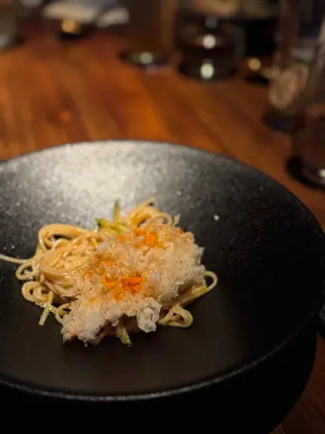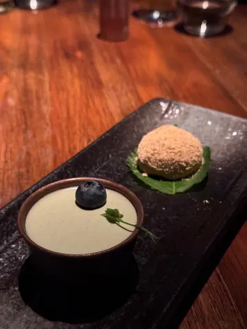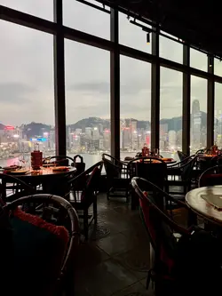 一走出电梯门,我穿越了?四周灯光昏暗。古式古风的砖墙,古代大户人家的的灯笼,转眼间来到了老北京。心情雀跃的在大门附近的装饰墙打了卡。店员引领,穿过一连串的蓝色时光走廊,又回来了熟悉的维多利亚港两岸。看著美丽的维港海景用餐,美景美食相伴,实属一大享受。点了套餐,店员陆续上菜,服务殷勤有礼。2道前菜很是开胃。擂椒皮蛋的组合对我来说很新鲜,但味道非常的搭配,有点辣,但很好吃!另一道鱼香海鲜莲藕饼调味也很赞,莲藕口感清爽。三葱爆炒龙虾,炒得很香,龙虾肉弹牙。重头戏是席前即烧的火焰胡椒片皮鸭,火焰的演出让人很是惊喜。鸭皮烧过后口感特别香脆,油香味重,味道浓郁,份量还超级大! 可以4个人分享也够。其后有小鱼菜苗,鱼汤味鲜,蔬菜苗也很新鲜嫩,清清淡淡的很合时。紧接著是主食:北海道带子葱油拌面。葱油香味突出,拌面口感Q弹,而且很挂汁。酱汁感觉愈吃愈辣,但很过瘾!最后是超级美的甜点,牡丹花海,美的让人不忍吃下呀。我们穿梭古今,过了一个开心的夜晚。…查看更多