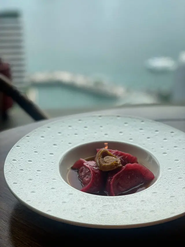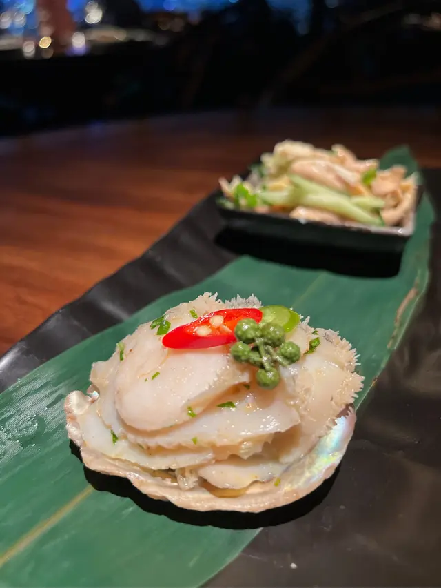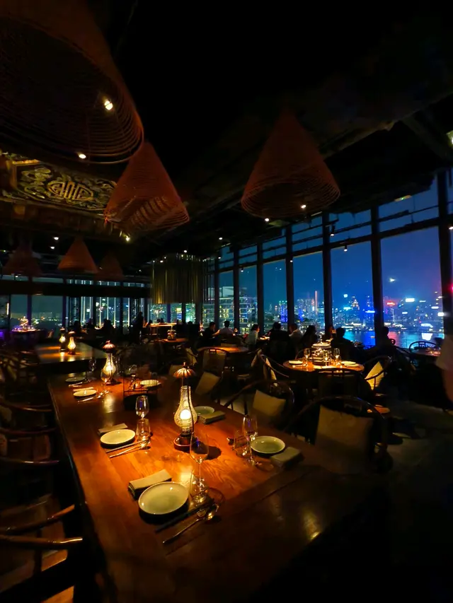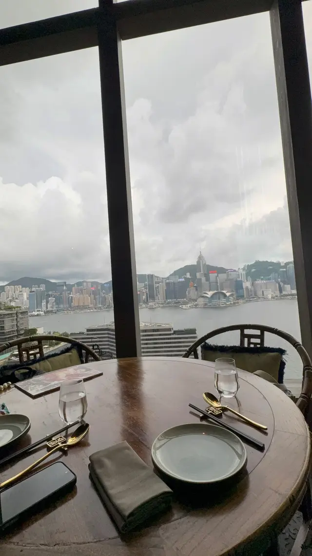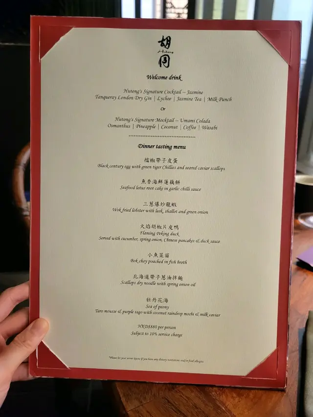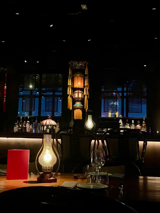 一走出電梯門,我穿越了?四周燈光昏暗。古式古風的磚牆,古代大戶人家的的燈籠,轉眼間來到了老北京。心情雀躍的在大門附近的裝飾牆打了卡。店員引領,穿過一連串的藍色時光走廊,又回來了熟悉的維多利亞港兩岸。看著美麗的維港海景用餐,美景美食相伴,實屬一大享受。點了套餐,店員陸續上菜,服務殷勤有禮。2道前菜很是開胃。擂椒皮蛋的組合對我來說很新鮮,但味道非常的搭配,有點辣,但很好吃!另一道魚香海鮮蓮藕餅調味也很讚,蓮藕口感清爽。三蔥爆炒龍蝦,炒得很香,龍蝦肉彈牙。重頭戲是席前即燒的火焰胡椒片皮鴨,火焰的演出讓人很是驚喜。鴨皮燒過後口感特別香脆,油香味重,味道濃郁,份量還超級大! 可以4個人分享也夠。其後有小魚菜苗,魚湯味鮮,蔬菜苗也很新鮮嫩,清清淡淡的很合時。緊接著是主食:北海道帶子蔥油拌麵。蔥油香味突出,拌麵口感Q彈,而且很掛汁。醬汁感覺愈吃愈辣,但很過癮!最後是超級美的甜點,牡丹花海,美的讓人不忍吃下呀。我們穿梭古今,過了一個開心的夜晚。…查看更多