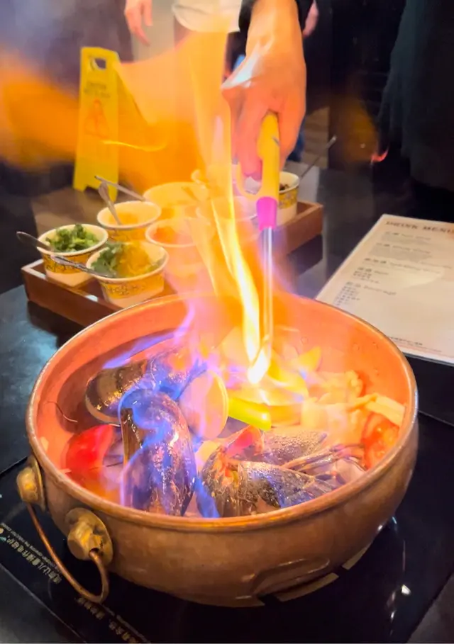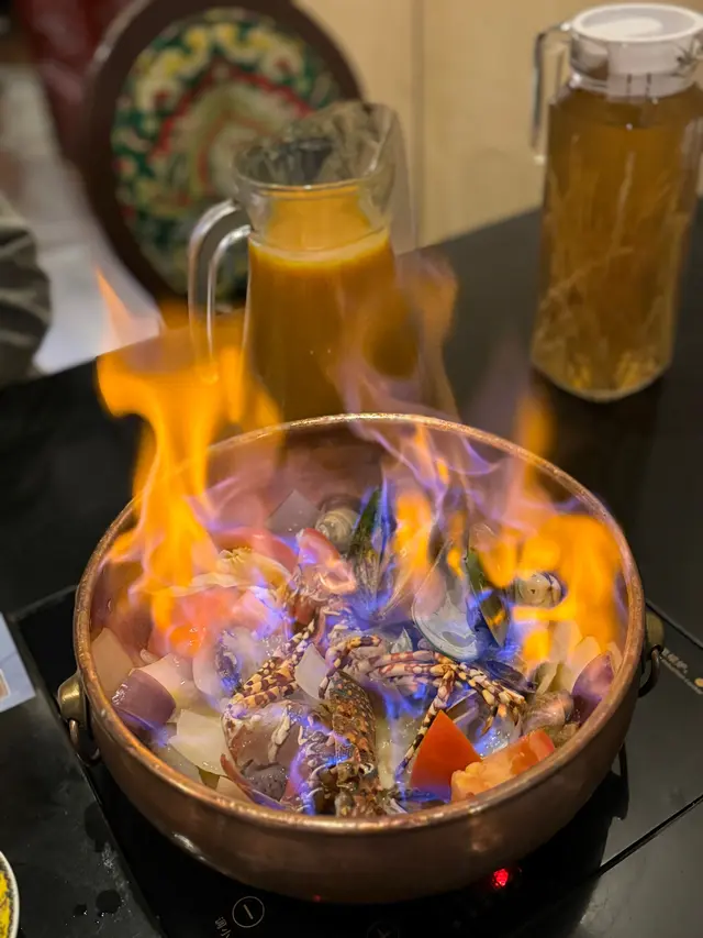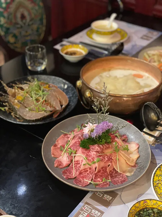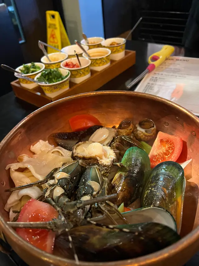 最近我特別迷戀吃海鮮火鍋!朋友介紹,體驗了一下這家高質火鍋的魅力,讓我難以忘懷!🥰👍👍👍首選超值且奢華的二人至尊寶套餐1.胡爐醉八鮮鍋:鮑魚,青龍蝦,花膠,魚翅,花枝,青口,卜卜蜆,花螺,食材豐富!精彩出場✧٩(ˊωˋ*)و✧,店員把白蘭地灑在鍋里,白蘭地被點燃的一瞬間,鎖住海鮮的鮮香,隨這火焰升起,鮮香四溢,讓人陶醉!2.胡爐精選牛拼盤:牛肉,牛舌,牛油,雪花肥牛,口感鮮美,必點推薦!3.至尊海鮮拼盤:鮑魚,靚蝦,聖子皇,珊瑚蚌,生蠔🦪,卜卜蜆,鮮甜可口,口感奢華極致!還點了黑松露墨魚丸,XO醬鮑魚蝦餃,鮮蝦雲吞,粒粒飽滿,青翠欲滴的時蔬拼盤,吃完超級滿足的,極致的享受!pS:服務好,食材優質,價格相宜的餐廳,真的是會吃完還想再去的!查看更多