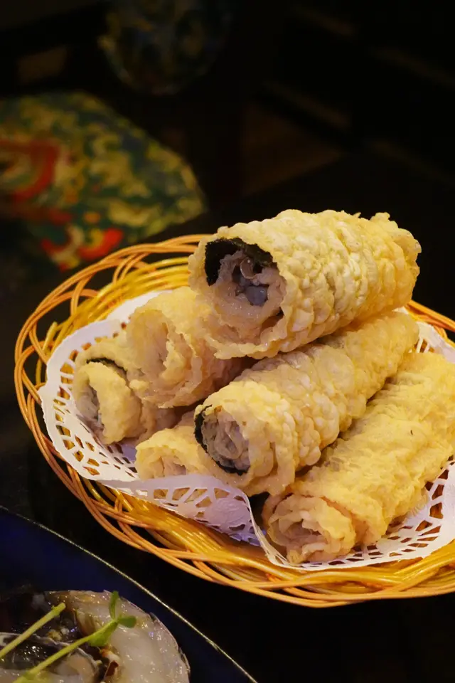 -尖沙咀厚福街成條街都係美食 今次我揀咗H8大廈 去到16樓打開𨋢門即刻走入一間宮廷中國風既火鍋店呢到食物質素高 兩個人食到棒住個肚走 每人大約6百幾蚊🤤🟣胡爐醉八仙鍋$398(龍蝦、鮑魚、魚翅、花膠、海參、螺、蜆、青口)店員先幫我哋炒香所有海鮮 倒入酒燒香 後加入龍蝦湯龍蝦湯濃而不膩😋 每人都差唔多飲左3,4碗 大癲!絕對可以為咗呢個湯底而來⋯勁抵食🩷每一款海鮮都好新鮮 龍蝦肉🦞爽口彈牙 青口勁大隻💪🏻🟣胡爐牛拼盤 $398(牛舌芯、安格斯手切肥牛、極上手切牛頸脊、牛胸爽、霜降牛粒)每款大約有四片 味道幾好 油脂分布均勻咩都有啲 啱晒選擇困難症嘅我🤭🟣五寶丸 $128(黑松露墨魚丸、手打墨魚丸、芝心蝦丸、梅菜豬肉丸、手打香茜榨菜牛丸)每款丸都好爽口 最鍾意手打墨魚丸 超彈牙好多墨魚粒👍🏻香茜榨菜牛丸口味比較濃 唔鍾意食芫荽嘅你 可能未必接受到⋯🟣招牌炸魚皮 $78即叫即炸脆卜卜 就咁食都好好食🤤點埋龍蝦湯索哂啲汁又係另一番風味🟣紫菜炸響鈴 $88呢款亦都係即叫即炸 裏面包咗紫菜浸一浸湯之後 🤩紫菜味變得更加濃郁 🟣蔬菜拼盤(細) $63(生菜、白菜仔、西洋菜、皇帝菜)細份都咁多 想像唔到大份有幾多⋯超值啦 咁大盤勁新鮮蔬菜🥬.查看更多