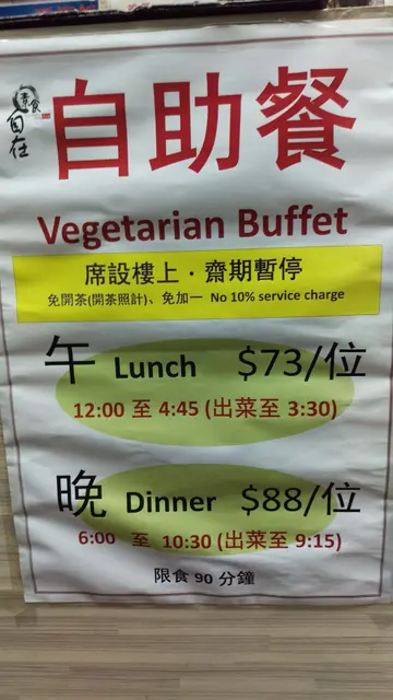 Black Friday....是日七夕小编因为被大陆人系地铁急停时,将一个肥婆+MTR 急停既冲突力, 全集中系佢个斗零高跟鞋的跟个度,之后一下踩落脚背(著左flat,冇保护),所以去左睇跌打先路过此素食店....茶每位$7,服务ok gei 都,但系点左个菜远xx饭,除左d 饭未熟,仲要重中之重,食到差不多最后先有发泡胶同阿姐讲,佢完全目冇表情,跟著黎手抢左你个有发泡胶既匙羹,毁尸灭迹....之后我话「下....」佢当听唔到掉头走....跟住临走时,听到隔离台好似话「d 饭唔熟...」我话 「咁啱我都系」,之后同阿姐讲,佢话好正常wor, 故事到呢到,所以大家自行判断同对号入座la ~~~…查看更多