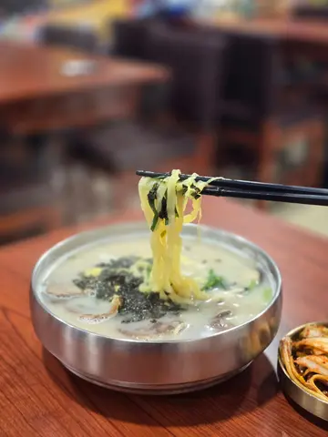 星期五晚上见到全店满座,相信一定唔错🤩同好友入去试试,估唔到咁有惊喜😍✨牛骨汤刀削面✨一上枱,就俾浓郁乳白色嘅牛骨香迷倒,香气十足😍汤底唔似一般韩式牛骨汤咁油腻,反而夹杂着阵阵胡椒香气,清爽得嚟带住层次分明嘅咸香,非常岀色👍🏻👍🏻刀削面弹牙烟韧,每条面条都系手工削出嘅粗条状,咬落去有嚼劲,又挂汤,真系好正❤️❤️搭配滑溜嘅蛋丝、紫菜及香菇一齐食,更加增添清甜的风味!牛展肉质软稔,份量不少,令人回味无穷。✨鸡髀刀削面✨鸡髀刀削面同样用牛骨汤底,但加咗几块薯仔令汤底口感更绵密丰厚。薯仔大块但炖得软稔,口感软烂❤️大大只鸡脾非常吸睛,啖啖肉,肉质滑嫩好食,搭配弹力十足的刀削面,每啖都好满足。而且汤底带嘅微辣感,唔会盖过鸡肉鲜味,反而更加提味,令人忍唔住一口接一口咁饮晒碗汤。✨海鲜韭菜煎饼✨煎饼表面香脆得嚟唔失弹性,中间馅料饱满,煎饼边缘煎到微焦,油份带出香味但唔腻口。配埋带点酸甜嘅蘸酱,令整体滋味更上一层楼。手工刀削面份量足又够烟韧弹牙,价钱合理,非常抵食,难怪有不少人排队。想睇更多介绍,马上Follow我啦😁。#自家制韩国刀削面 #香港第一间韩式刀削面 #牛骨汤刀削面 #鸡髀刀削面 #韩式刀削面 #元朗美食 #元朗 #元朗好去处 #big_big_foodie #big_big_foodie食匀元朗 #big_big_foodie食匀香港…查看更多