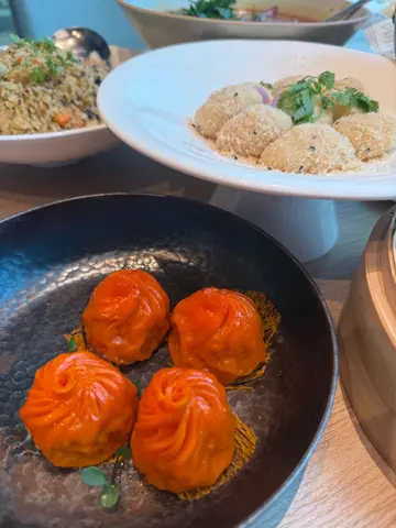 呢排发掘到一间系airside 好出色嘅新派潮州菜,叫自己人😆融合左传统嘅潮州风味加埋创新嘅元素,有一系列嘅点心同埋地道小菜😊原来佢已经有几间分店,呢间系airside 嘅分店都坐得好舒适,手机落单形式,非常方便😛🔻▪️潮汕卤水炸乳鸽 $49/只呢个卤水乳鸽就standard啦,唔算太特别,不过唔会好油腻,仲有手套,食嘅时候好方便😌▪️酒醉走地鸡 $89呢个醉鸡好出色,好有酒味,啲鸡唔会好肥,啖啖肉▪️卤水鹅件 $99呢个都几好食,啲鹅唔会好肥,而且啲鹅索晒啲酱汁,好入味,都唔错😗▪️葱香角螺 $149呢个真系必试,上面系角螺,好香葱味同埋都好有嚼头,下面系切到好幼嘅莴笋,好爽口,非常好食🤤▪️冰镇咕噜肉 $129呢个都好特别,因为啲咕噜肉系放系啲冰上面,做到冷热交融嘅感觉,食落好脆口,都好食😋▪️酸菜龙趸 $149呢个酸菜鱼好抵食,份量都几多,啲龙趸好滑,入面仲有好多料,例如粉丝、酸菜、芽菜等,辣辣地咁好过瘾,佐饭一流☺️▪️豆浆蟹肉蕃薯菜苗 $89呢个个汤汁系用豆浆整,食落的确冇咁咸,仲加左蟹肉落去,蕃薯苗都几嫩,都ok ▪️金鱼戏水 (汤虾饺) $49/2件呢个系做左会员之后送嘅,食落好唔错,虾肉劲多,仲有汤汁系下低,睇黎佢嘅点心都好正😊▪️老菜脯海鲜炒饭 $99呢个饭都好推介,食左两次都有点呢个,入好有好多海鲜,跟住加左菜脯有啲嚼头,啲饭炒到一粒粒够晒香,又唔会好dry, 好好食🤪…查看更多