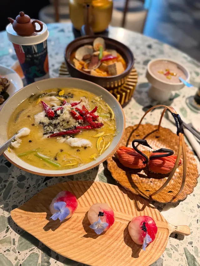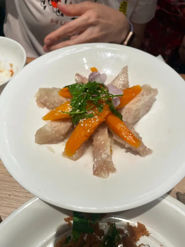 最近一兩年不少商場都有不同中菜品牌進駐,AIRSIDE也不例外——這間新店從店名「自己人」估是潮州菜,光顧後看看餐牌發現除傳統潮州菜式外還有不少中國其他地區的食物。其食物/煮法之多元化尤其體現於不同套餐:我們叫了一個兩位用的A餐,價值$460,頭盤有泰式的酸辣魚皮: