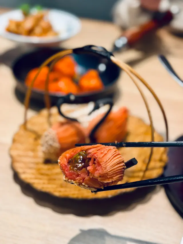 呢排發掘到一間係airside 好出色嘅新派潮州菜,叫自己人😆融合左傳統嘅潮州風味加埋創新嘅元素,有一系列嘅點心同埋地道小菜😊原來佢已經有幾間分店,呢間係airside 嘅分店都坐得好舒適,手機落單形式,非常方便😛🔻▪️潮汕鹵水炸乳鴿 $49/只呢個鹵水乳鴿就standard啦,唔算太特別,不過唔會好油膩,仲有手套,食嘅時候好方便😌▪️酒醉走地雞 $89呢個醉雞好出色,好有酒味,啲雞唔會好肥,啖啖肉▪️鹵水鵝件 $99呢個都幾好食,啲鵝唔會好肥,而且啲鵝索曬啲醬汁,好入味,都唔錯😗▪️蔥香角螺 $149呢個真係必試,上面係角螺,好香蔥味同埋都好有嚼頭,下面係切到好幼嘅萵筍,好爽口,非常好食🤤▪️冰鎮咕嚕肉 $129呢個都好特別,因為啲咕嚕肉係放係啲冰上面,做到冷熱交融嘅感覺,食落好脆口,都好食😋▪️酸菜龍躉 $149呢個酸菜魚好抵食,份量都幾多,啲龍躉好滑,入面仲有好多料,例如粉絲、酸菜、芽菜等,辣辣地咁好過癮,佐飯一流☺️▪️豆漿蟹肉蕃薯菜苗 $89呢個個湯汁係用豆漿整,食落的確冇咁咸,仲加左蟹肉落去,蕃薯苗都幾嫩,都ok ▪️金魚戲水 (湯蝦餃) $49/2件呢個係做左會員之後送嘅,食落好唔錯,蝦肉勁多,仲有湯汁係下低,睇黎佢嘅點心都好正😊▪️老菜脯海鮮炒飯 $99呢個飯都好推介,食左兩次都有點呢個,入好有好多海鮮,跟住加左菜脯有啲嚼頭,啲飯炒到一粒粒夠曬香,又唔會好dry, 好好食🤪…查看更多