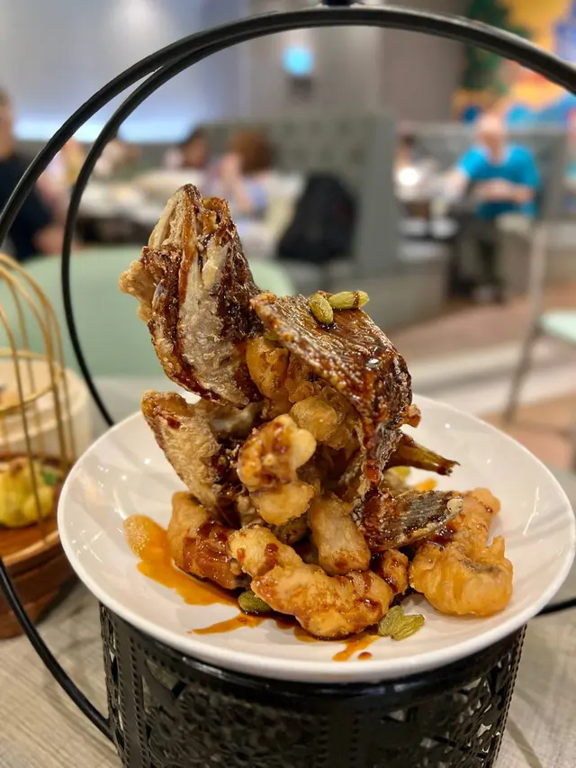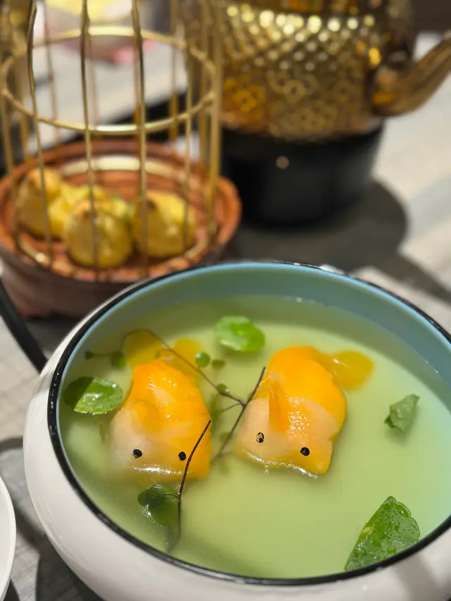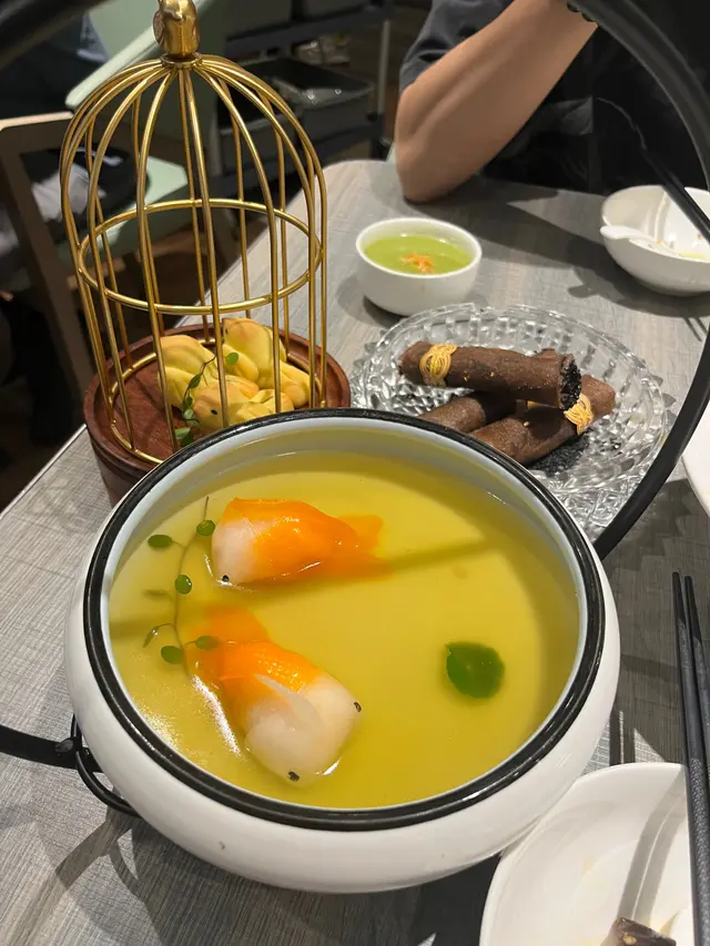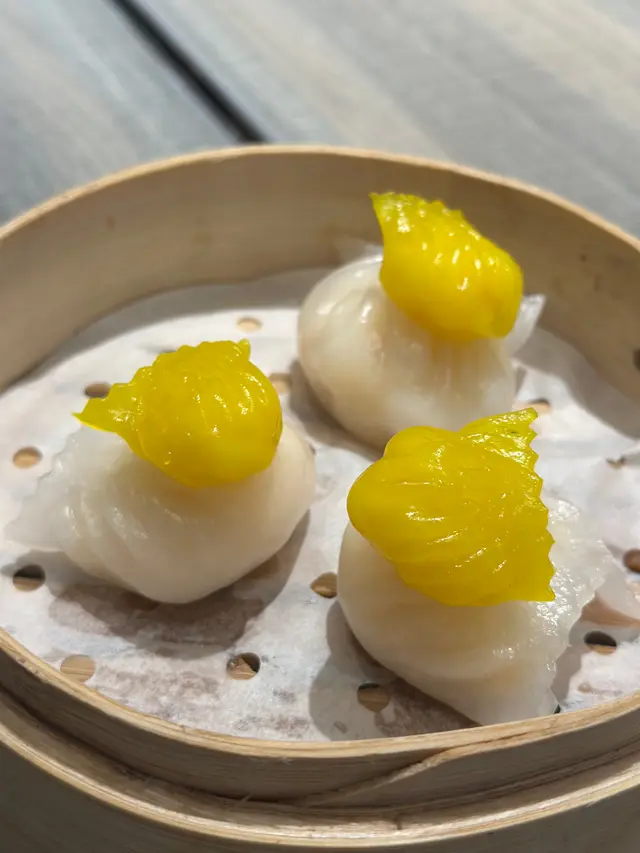 今天和朋友來到這間餐廳吃點心,它們點心的造型很精緻漂亮,可惜大部分的味道都只是普通而已,有些更十分難吃,不過只要做會員,點心便有半價優惠,怪不得閒日的中午都有很多人來吃。小小梨子:它是一款類似鹹水角的東西,外皮香脆可口,煙煙韌韌,內裡則是黑椒牛肉餡料,微辣惹味,是全場最美味的食物之一。金魚戲水:它是一款湯蝦餃,餃皮微微煙韌,蝦肉則爽口彈牙,鮮甜美味,同樣都是全場最出色的食物之一,之後的點心便開始難吃了。鳳梨雀仔:顧名思義,它是一份鳳梨酥,熱的鳳梨酥外表都算鬆軟,不過味道略為過甜,有一點甜膩的感覺,但都算可以入口的。老香黃雪山包:它是一份雪山叉燒包,第一口吃下去的時候,覺得挺好吃的,叉燒包的質感幾鬆軟可口,可是當吃到餡料後立即臉色一變...叉燒餡料只有濃濃的甜味,正常叉燒應該是鹹鹹的同時,帶有一絲甜味,但這個簡直是甜得嗆喉,滿口都是化學甜味,我從來沒吃過這麼難吃的叉燒包!黑蒜蝦燒賣:當我們發現造型點心大部分只是味道一般,便覺得不如點一些正常樣子的點心,味道可能會好一點,怎料這份燒賣簡直是伏中之伏,黑蒜的味道十分怪異,滿口都是怪味,十分難吃,我吃了一口便立即放棄了!價錢方面,茶位$15/位(只有一款茶選擇),點心原價$236,餐廳設有加一服務費,半價之後兩人總共是$157。總結來說,雖然今次的點心味道十分一般,但是看在半價的份上,以及沒有限時,都幾適合約朋友一起來聚會,可以慢慢聊天,只要選一些比較美味的點心便可以了。…查看更多