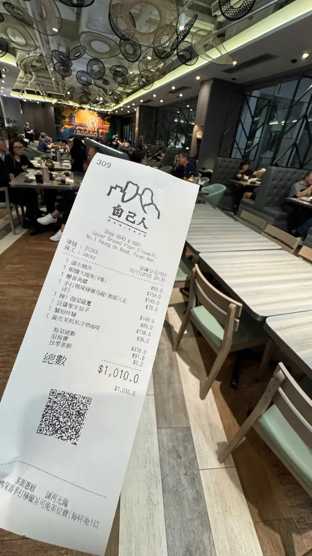 今日同屋企人去荃灣呢間自己人到食飯,一入去就有種熟悉感~🤭 氣氛輕鬆無壓力,啲菜又有創意又有水準,真係食得開心又滿足!潮汕滷水炸乳鴿 🕊️外皮炸到金黃香脆,啖啖鴿肉都保持嫩滑多汁,滷水香氣滲入骨髓,唔會覺得油膩,一食停唔到口。抱抱蝦餃 🦐外皮超通透,內裡蝦肉爽彈,最有趣係有一大一細蝦餃,好似媽咪抱住BB,造型得意,味道一流。魚翅撈飯 🍚呢個主食走豪華路線,飯粒吸住魚翅精華與湯汁,粒粒分明又夠入味,食完有種高級潮州飯堂感覺。滷水鵝件 🦆鵝件厚切,滷得入味,肉質軟腍,每一片都帶著濃郁的鹹香,鍾意滷水的人絕對不能錯過!辣酒花螺 🌶️花螺鮮甜彈牙,配上微辣的辣酒,酒香撲鼻,好食到停唔到口。鳳梨雀仔 🍍甜品造型新穎,用上鳳梨做小鳥仔,酸甜清新,賣相吸引,食落有驚喜。酸菜龍躉 🐟龍躉魚肉厚實滑嫩,搭配酸菜湯底,酸香開胃,魚肉鮮嫩不散,簡直是酸菜魚中的極品!👍🏻多肉荔枝鴨屎烏龍 🧋烏龍茶味道濃郁,帶荔枝果香,茶香解膩又夠消滯,食完咁多道菜配返杯真係perfect。「自己人」價錢親民,味道高質,好啱同朋友聚餐或家庭聚會,一試就會變「自己人」😉!…查看更多