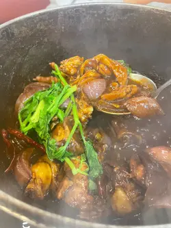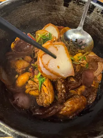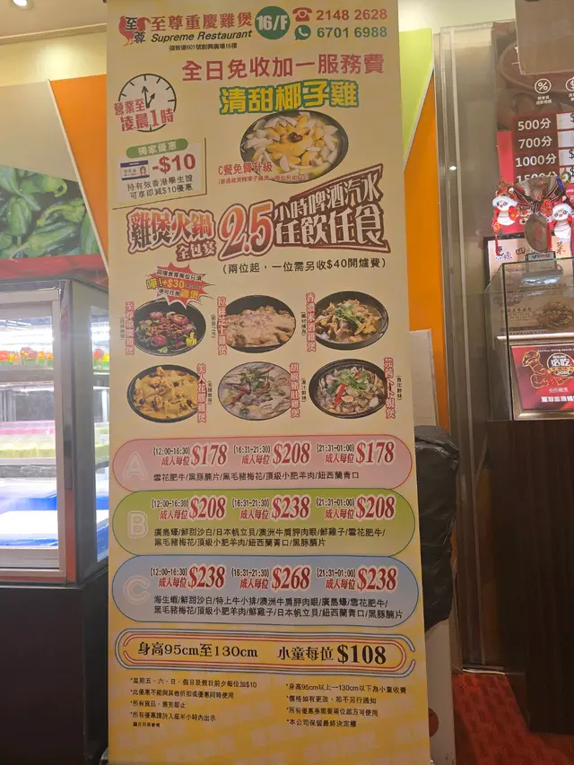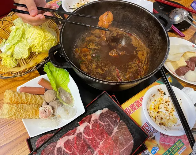 友人话好耐无食过鸡煲,放工后就同佢上黎呢度。三款套餐都唔过每位三百,全日免收加一,咁就叫C餐,最多款式。多个冻柜有齐特色罐装饮品,连啤酒都有。入坐后即刻去拎罐冻饮爽爽先。根据佢教你嘅食鸡三部曲,首先食咗个至尊重庆鸡煲,开细火滚返热就食得,一路滚起,个鸡煲香味就开始散出黎。鸡件相当入味,个鸡煲酱汁够晒惹味,辣度自选小辣,有大量香甜洋葱及芹菜,就咁配个白饭都已经可以当一餐。跟住趁有呢个惹味鸡煲酱汁,就叫咗一系列挂汁尤物,有牛栢叶,水鱿,猪皮,鹅肠,炸支竹及鸭血等。与酱汁一齐煮,好似食紧街边小食档D一串串咁,好食又过瘾。食完就可以最后一部曲,扫二维码落火锅配料单。自制肉类拼盘,有澳洲牛肩肉眼,特上牛小排,羊肉片及黑豚梅花片。加汤就可以开始打边炉,先烚片澳洲牛肩肉眼,肉味几重,肉质几嫩,烚几秒就食得。之后就到特上牛小排,脂肪位多D,多一份油香及滑溜。又自制咗个海鲜拼盘,包括有虾,沙白,鱿鱼仔,脆骨腩,青口及广岛蚝。欢喜只虾几弹牙及有虾味。丸类当然系火锅中不能缺少,叫咗蒜味花枝丸及爆汁牛丸,仲有芝心丸。蔬菜已放好一碗碗于冻柜,可出去自取。记住留肚食甜品,有啫喱,奶冻,桂花糕等仲有多款特色口味嘅雪糕杯当然唔客气可以一次过试几款味道。任饮任食2.5小时,就算一路食一路倾计时间都相当足够。…查看更多