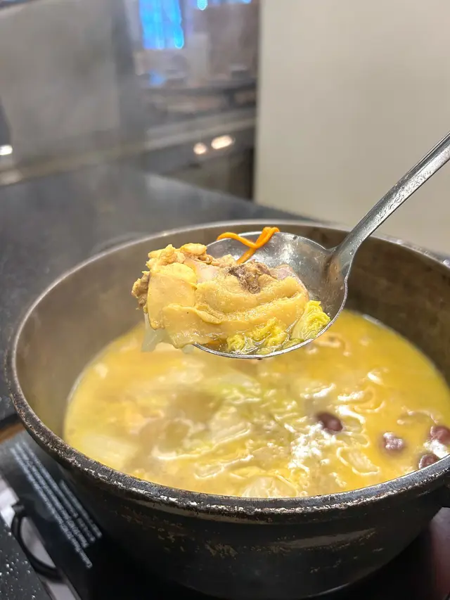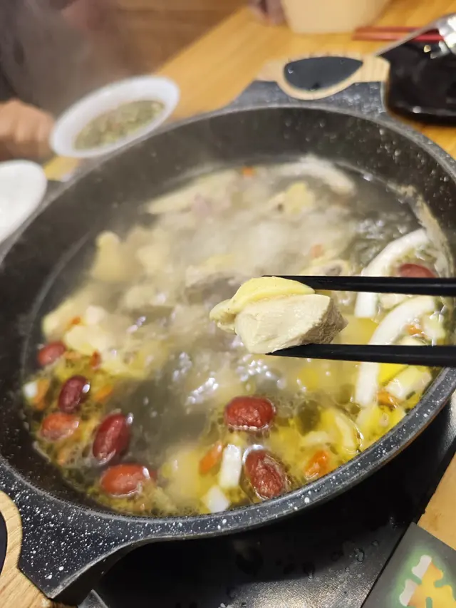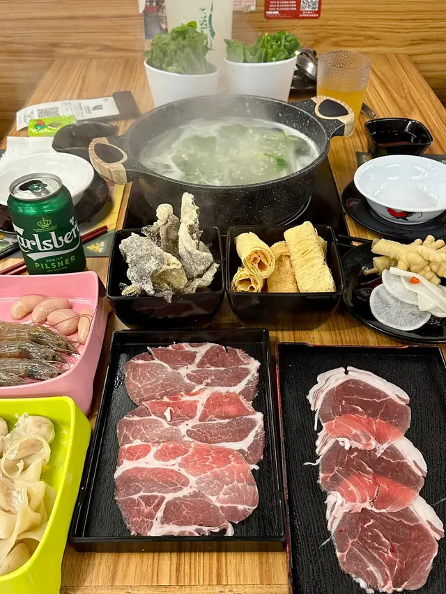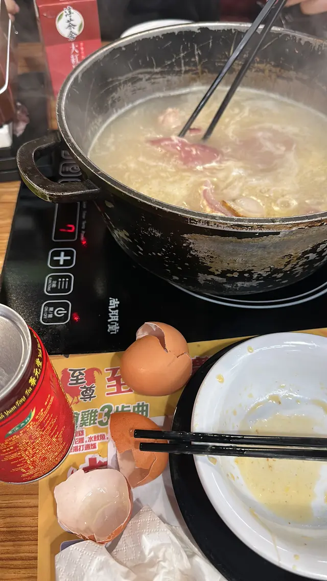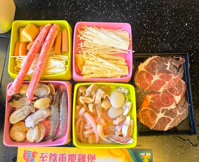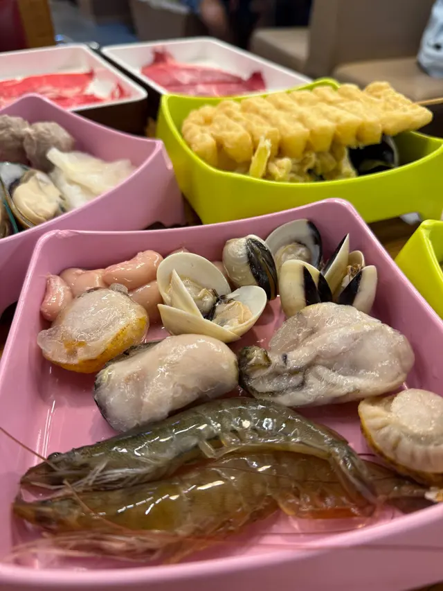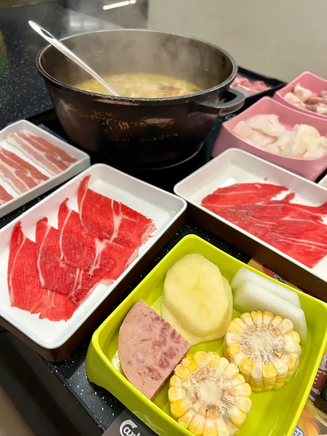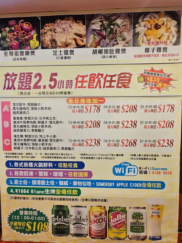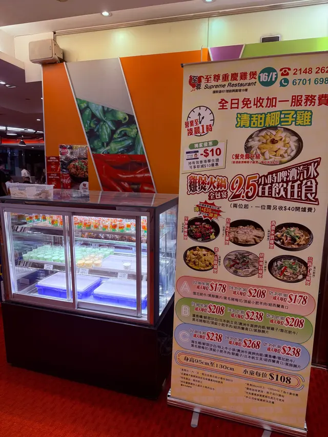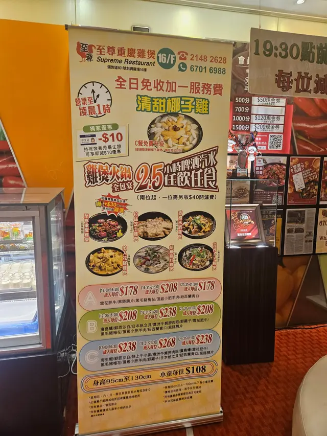 友人話好耐無食過鷄煲,放工後就同佢上黎呢度。三款套餐都唔過每位三百,全日免收加一,咁就叫C餐,最多款式。多個凍櫃有齊特色罐裝飲品,連啤酒都有。入坐後即刻去拎罐凍飲爽爽先。根據佢教你嘅食鷄三部曲,首先食咗個至尊重慶雞煲,開細火滾返熱就食得,一路滾起,個鷄煲香味就開始散出黎。鷄件相當入味,個鷄煲醬汁夠晒惹味,辣度自選小辣,有大量香甜洋蔥及芹菜,就咁配個白飯都已經可以當一餐。跟住趁有呢個惹味鷄煲醬汁,就叫咗一系列掛汁尤物,有牛栢葉,水魷,豬皮,鵝腸,炸支竹及鴨血等。與醬汁一齊煮,好似食緊街邊小食檔D一串串咁,好食又過癮。食完就可以最後一部曲,掃二維碼落火鍋配料單。自製肉類拼盤,有澳洲牛肩肉眼,特上牛小排,羊肉片及黑豚梅花片。加湯就可以開始打邊爐,先烚片澳洲牛肩肉眼,肉味幾重,肉質幾嫩,烚幾秒就食得。之後就到特上牛小排,脂肪位多D,多一份油香及滑溜。又自製咗個海鮮拼盤,包括有蝦,沙白,魷魚仔,脆骨腩,青口及廣島蠔。歡喜隻蝦幾彈牙及有蝦味。丸類當然係火鍋中不能缺少,叫咗蒜味花枝丸及爆汁牛丸,仲有芝心丸。蔬菜已放好一碗碗於凍櫃,可出去自取。記住留肚食甜品,有啫喱,奶凍,桂花糕等仲有多款特色口味嘅雪糕杯當然唔客氣可以一次過試幾款味道。任飲任食2.5小時,就算一路食一路傾計時間都相當足夠。…查看更多
