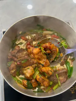 餐厅主打任饮任食鸡煲打边炉🥘平日每位$188性价比极高💯但唔包括收费小食及啤酒🍺至尊惹味鸡煲🐔🍲今次主要系食惹味鸡煲,上枱后店员会帮手将已腌制好的鸡件同芫茜、芹菜、洋葱🧅及葱等香料炒至入味,鸡件份量十足👍,叫左小辣🌶️,辣味程度可跟自己口味决定,每件鸡件香辣惹味,啖啖肉好入味,不同部位的鸡件食落有不同口感,友人钟意食鸡脾的位置肉质嫩滑啲,鸡件食到七七八八可以用手机落单重点系无限加鸡‼️,但想留肚打边炉关系,只系再追加多一人份量鸡件,平时唔系食肉兽的我,惹味鸡煲令我忍唔住一件接一件😂炸馒头🫓外皮炸到黄金香脆,内里软熟,再淋上炼奶一齐食真系冇得输😋推介👍🏻打边炉🍲食完鸡煲后再加汤开始打边炉属双重享受,火锅配料超过50款选择,包括有肉类,丸类,蔬菜及粉面等,食完鸡煲已有七成饱,所以打边炉配料只叫左几款黎食油炸鬼:好少见有油炸鬼,滚一滚就食得鱿鱼🦑:食落爽口弹牙,唔会韧芝士竹轮🫔:要小心热咬落去食到芝士oppa鱼板🍢:外形好似韩国的鱼糕,唔想淋就唔好滚太耐娃娃菜🥬及粟米🌽:吸尽汤底精华辣辣地好惹味饮品任饮🥤除左罐装汽水🥤外,仲有茶餐厅普遍饮品(咖啡,奶茶,柠檬茶及菜蜜等),仲有豆浆及罗汉果杞子菊花茶等罗汉果杞子菊花茶:饮到淡淡菊花茶味,食完鸡煲饮返杯清热解腻…查看更多