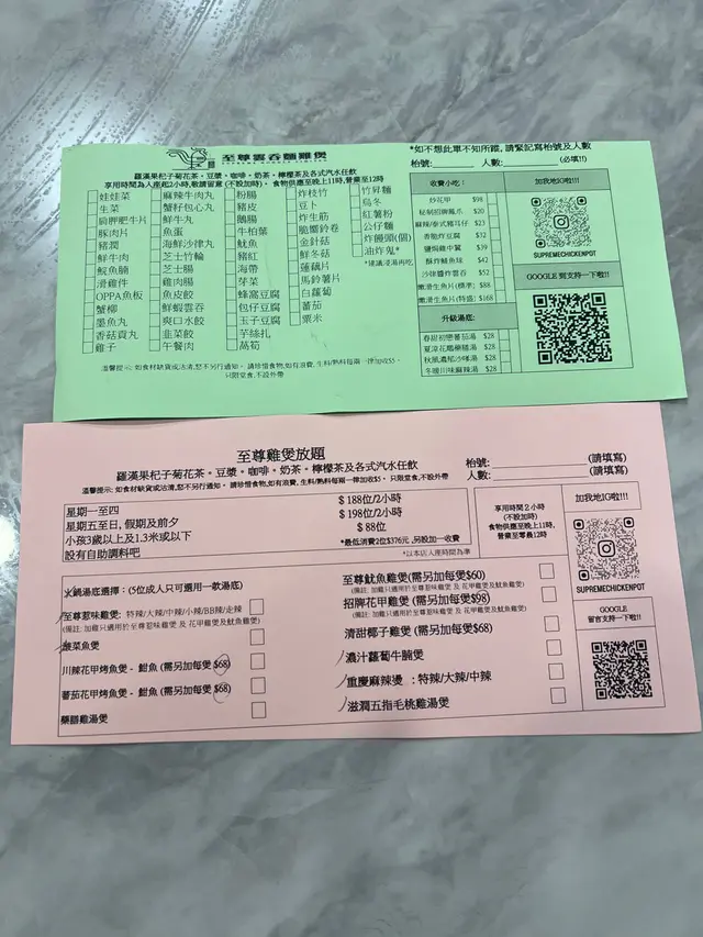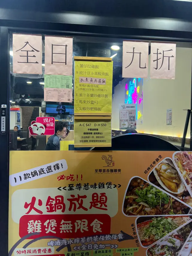 這次我們去到荃灣的至尊雲吞雞煲吃兩小時的任飲任食雞煲火鍋餐,餐廳光猛企理,設有卡位座位寬敞舒適。當日看見不少附近的街坊在這裏吃晚餐,職員都很耐心服務他們,感覺充滿人情味呢!首先我們先吃雞煲,選了至尊惹味雞煲,點了小辣覺得可以吃辣一點,所以第二次加雞就點了中辣,吃起來更加香辣惹味,不過就要多喝飲品解辣了~碗裏寫的一句加雞啊!唔該!感覺很有趣盞鬼啊!而雞煲的雞肉質不錯,沒有雪藏味,而且大大件不會切得太細件而難於進食。吃完雞煲之後,職員就幫我們加湯開始火鍋了~這裏的火鍋配料多達50多款,不過兩小時都足夠我們嚐到大部份的食物了。最得我心的是✨炸饅頭加煉奶,炸得香脆金黃色的外皮,內裏是白色的饅頭,再加配甜絲絲的煉奶,吃得很滋味~還有油炸鬼,不過我今次太飽沒有吃到,但喜歡吃香脆的炸物的人點來吃最適合不過。麵方面有烏冬、紅薯粉、公仔麵和少見的竹昇麵。🍡丸類推介海鮮沙律丸,外皮好像魚片般的,內裏包着海鮮沙律醬。🍢Oppa魚板,好像韓國的魚糕和關東煮裏面的配料味道。🥟韭菜餃,韭菜味香濃,感覺足料。✨豬潤很鮮味。🥤飲品方面有一般罐裝的汽水,雖然選擇不算多,但有羅漢果杞子菊花茶、豆漿,以及平時茶餐廳即沖的咖啡、奶茶、阿華田、朱古力、檸檬茶等搭救,吃雞煲火鍋配搭這些飲品感覺很特別呢!·整體的食物味道都不錯,仼飲仼食免加一,當日還有九折優惠,人均大約$160,$200都不用,性價比高!而且餐廳營業至晚上12時,晚一點來吃都不用擔心吃得趕唷~…查看更多