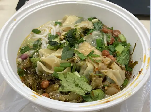 一碗重口味, 即係又酸又辣架云吞米線 盛為$38蚊, 外賣加一 即$39。呢碗米線有4定5隻雲吞, 韭菜口味黎既, 味道都OK, 線質都冇咩大問題, 麵量都算多。唔會太辣或過酸。整體黎講都OK LA , 冇咩特別。查看更多