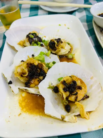 长洲出名海鲜,兴乐菜馆真系首选,因为之前食过其他令我好失望,都觉得好一般,不过自从食咗呢一间原居民朋友介绍嘅兴乐菜馆,每次嚟长洲要食海鲜就一定拣呢间,因为呢间真系特别新鲜。我和朋友同仔仔一齐食,叫咗三个𩠌一个饭,分别椒盐鱿鱼、姜葱炒蟹、粉丝蒸扇贝,椒盐鱿鱼仔仔佢自己一个已食咗大半碟,重点要点酱汁,粉丝蒸扇贝配饭小朋友都好钟意,重点系配海景,简直一流。同埋我哋平日同埋12点前入座,所以唔多人,坐得舒适,倾计轻松食饭一下最啱。