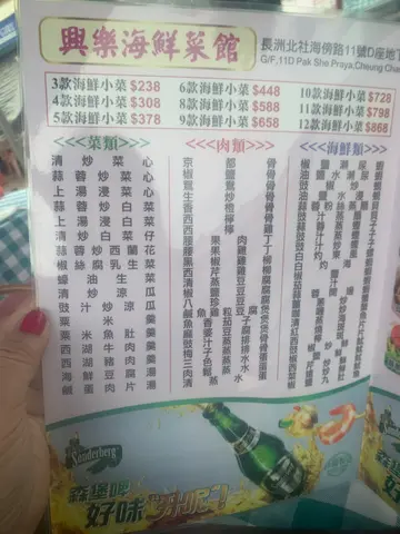 興樂菜館 (长洲) 网址: https://s.openrice.com/QrLS0jmG000 地址: 香港長洲北社海傍路11D號地舖 电话: +852 29819773