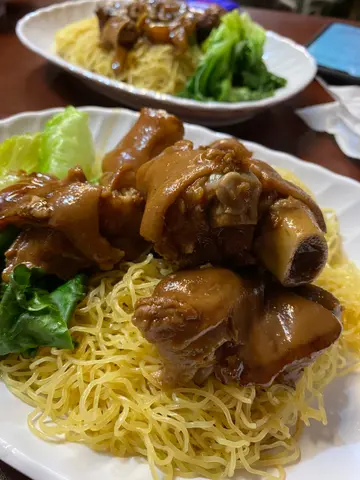 哈哈!今次呢间面店,系令我明白到同一个面底,原来都可以煮出两个世界嘅启蒙老师,佢之前系太子真系薄有名气㗎!佢嘅猪手捞面真系顶瓜瓜🍉,猪手炆到啱啱好,腍得黎又胶原蛋白十足,粘口又香浓嘅酱汁,一吮就骨肉分离,唯独是个面底,唔同师父煮出黎真系唔同感觉!佢之前系好地踎嘅一间小店,昏黄嘅灯,窄小嘅店铺,因为铺内空间太小,对住煮面幅墙嘅位置直接就有一张铁枱,你系好清晰就见到边个煮面。我果时真系好似俄罗斯轮盘咁,如果系老嘀果个伯伯煮,个面一定好食!因为佢掌握个面嘅爽口度,干身感,系完美!而其他人煮都系水汪汪,个面淋哂....但自从佢顶手后,我就再冇去过啦!经过见佢顶埋格离间铺黎做,应该生意都唔错丫!但转手之后硬系惊佢唔同咗,所以迟迟都未敢尝试...今次因为赶时间,要速食,咁不如俾个机会佢啦!(哈哈!系咪觉得自己好劲,唔知以为人哋好恨